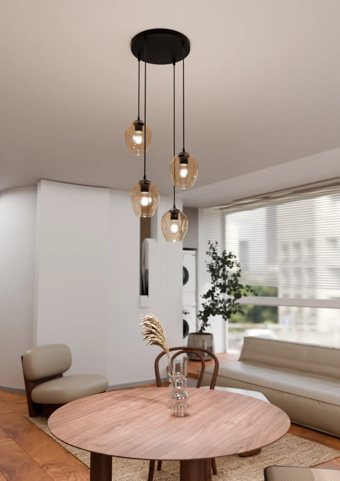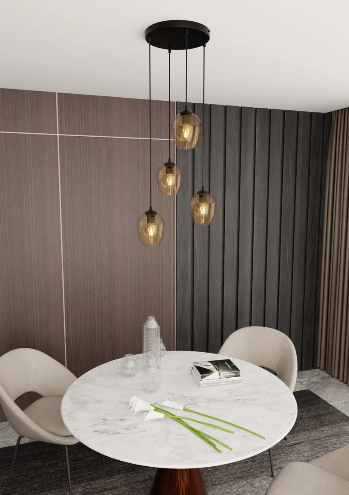 Istar er en nydelig pendelserie, som blant annet finnes som 3 eller 4 lys. Modellen er i fargen sort og kan velge mellom klart-, røykfarget- eller amberfarget glass.