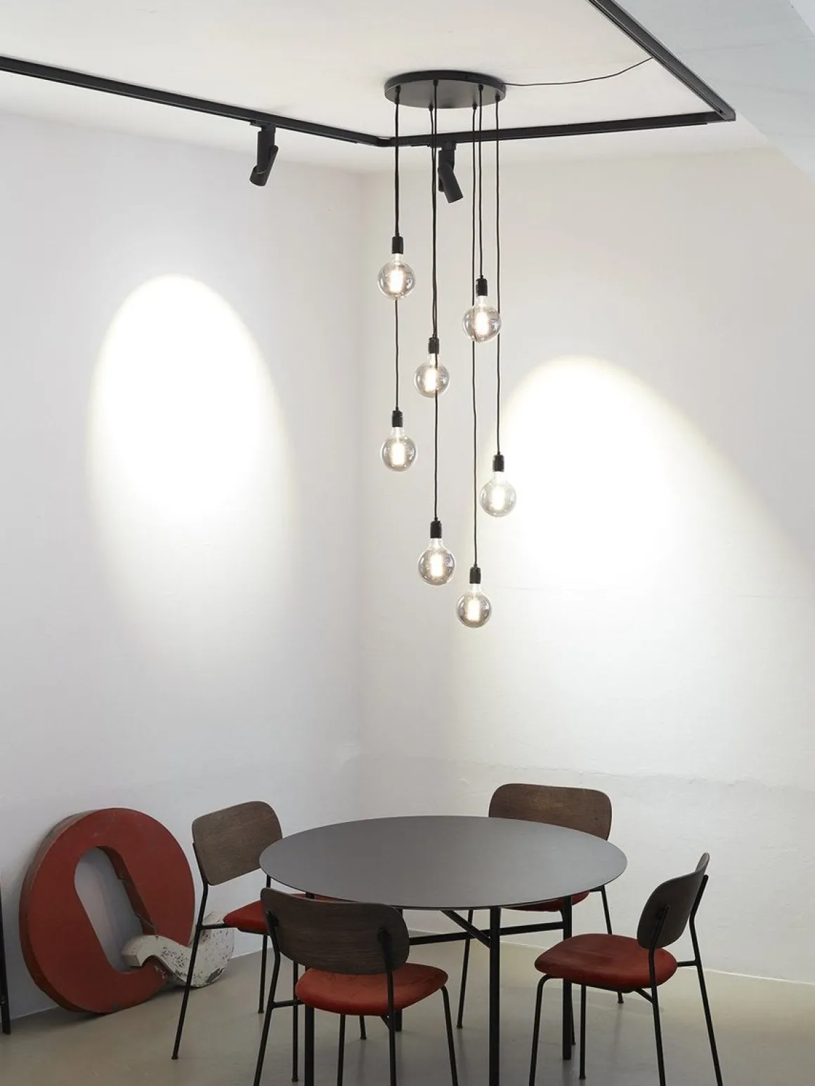 Stilren takpendel som setter lyspæren i fokus. Kjøp gjerne dekorative lyspærer for at lampen skal bli komplett. Hver ledning kan reguleres.