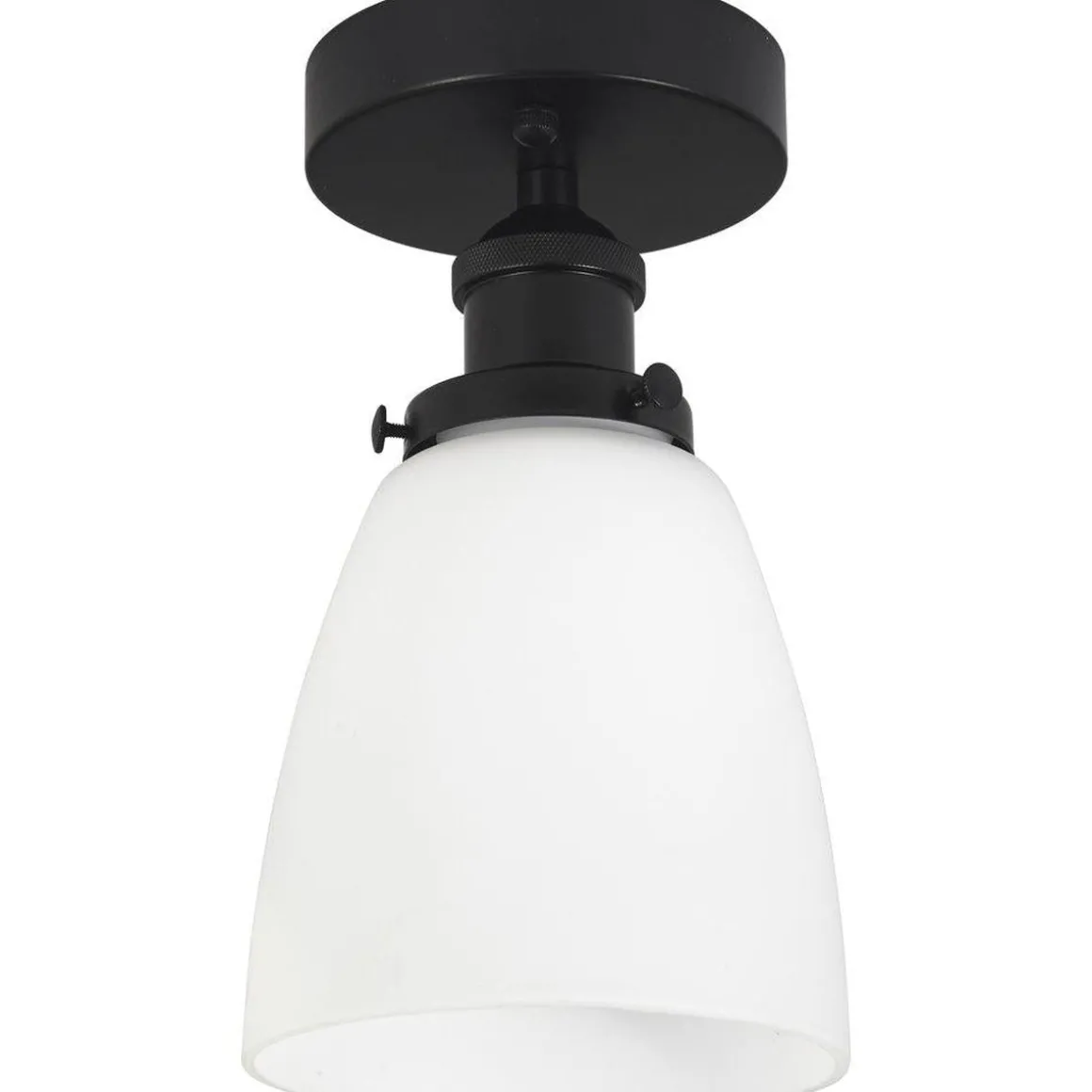 Taklampe i klassisk design med opal glass og metall chassis i matt sort / messing overflate finish.