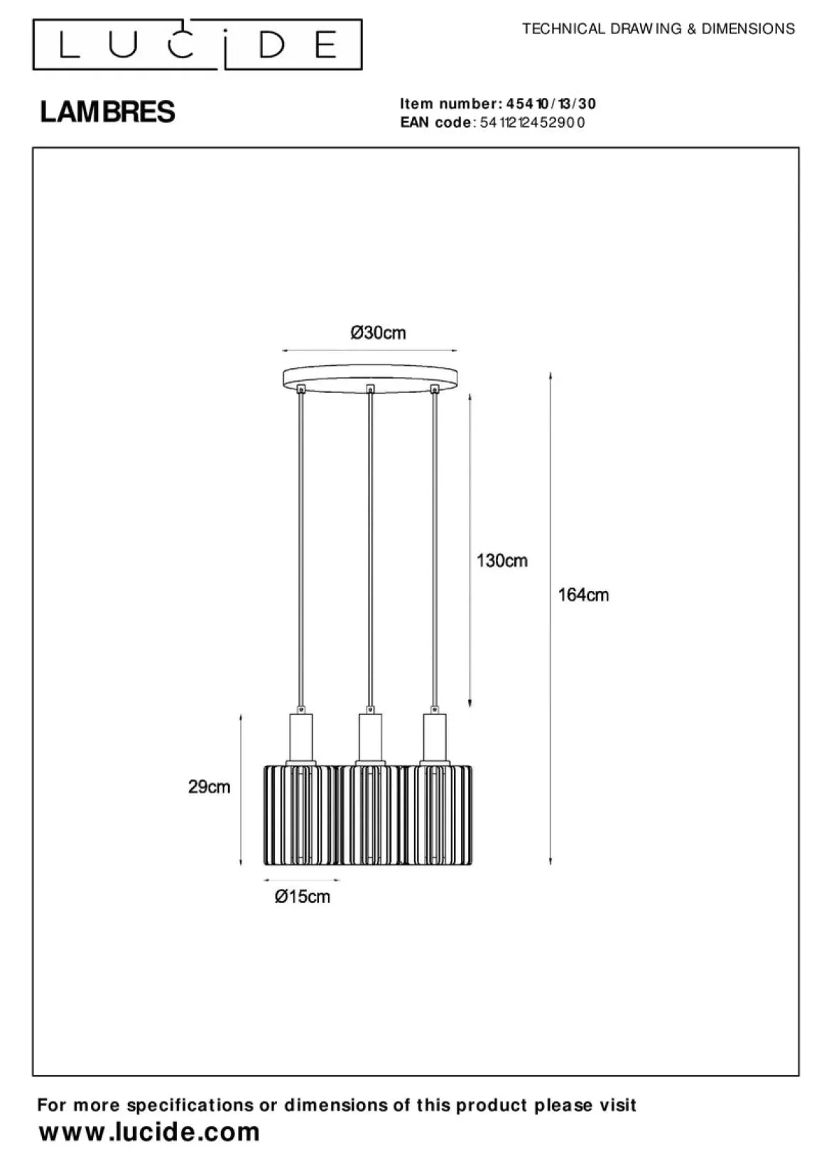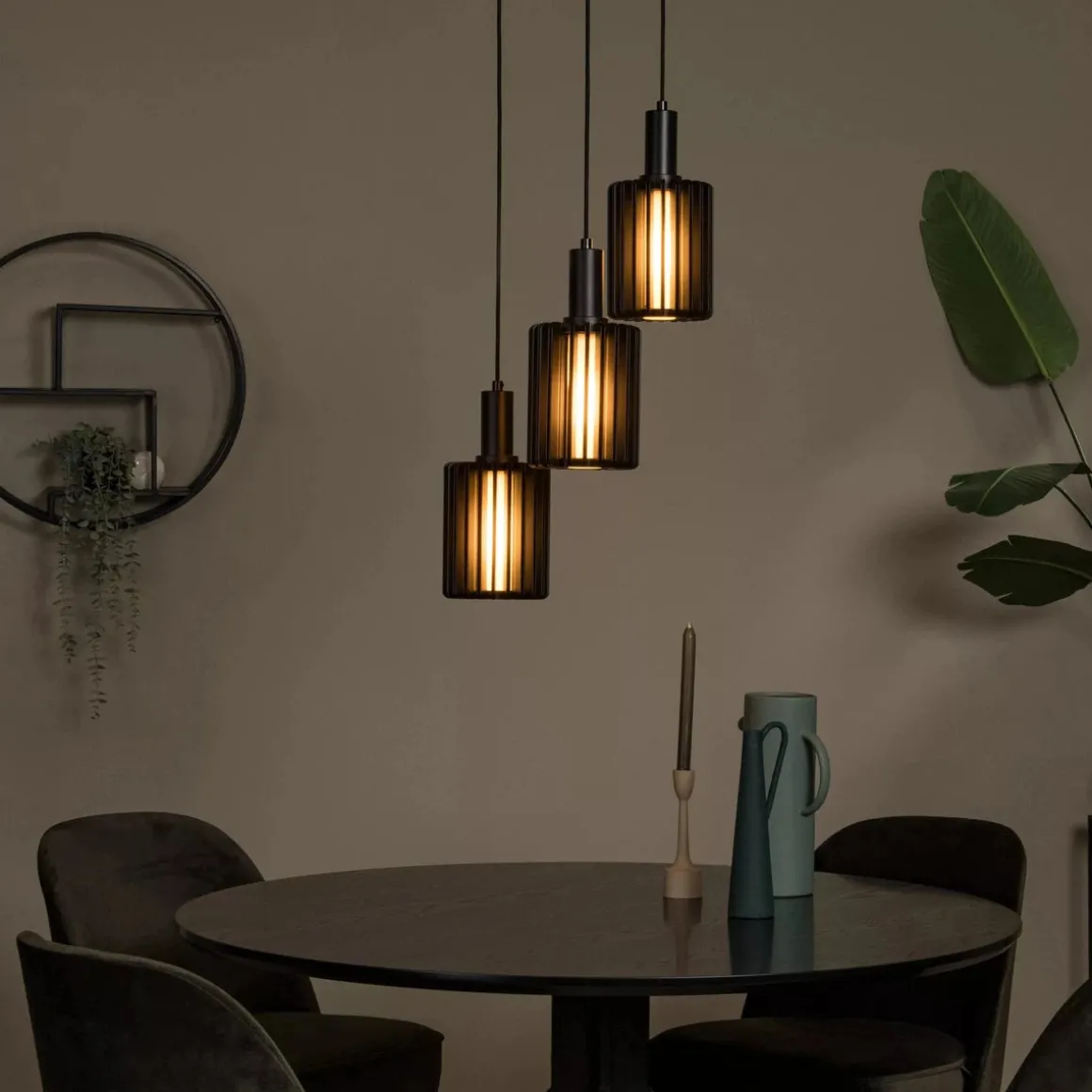 Du kan ikke gå galt med Lambres. Denne elegante pendellampen med tre pendler er en ekte showstopper. Hvert anheng har en ramme av fine metalllameller som omslutter en diffusor av frostet glass, og skaper et konsekvent mykt, diffust varmt hvitt lys. Du kan enkelt justere høyden på anhengene under installasjonen. Hvis du kobler denne praktfulle lysekronen til en dimmer, kan du legge til enda mer atmosfære til hjemmet ditt