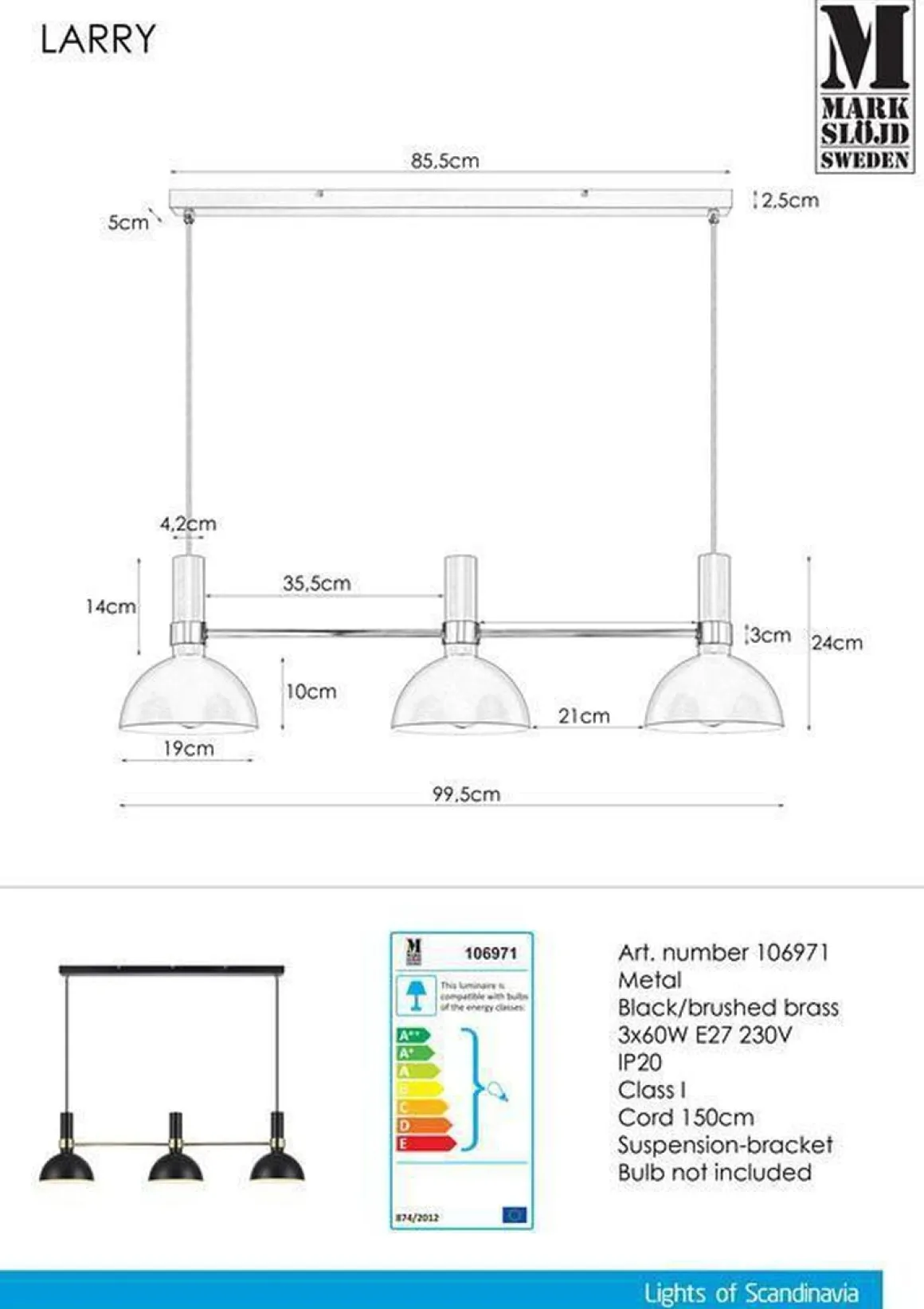 Bruk gjerne dimbare lyspærer og koble lampen til en dimmer for å justere lysstyrken etter behov. Du behøver 3 stk lyspærer til lampen.
