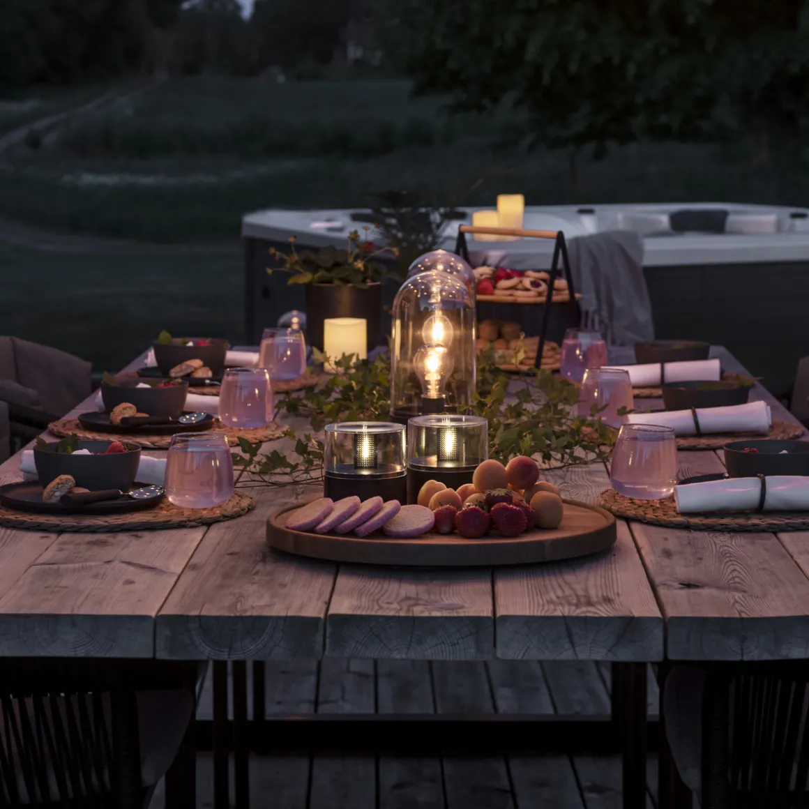 Utelykt fra Konstsmide med stemningsfull og varm fargetemperatur. Perfekt til sene vår- og sommerkvelder i hagen og på terrassen, men kan også brukes ute på vinteren.