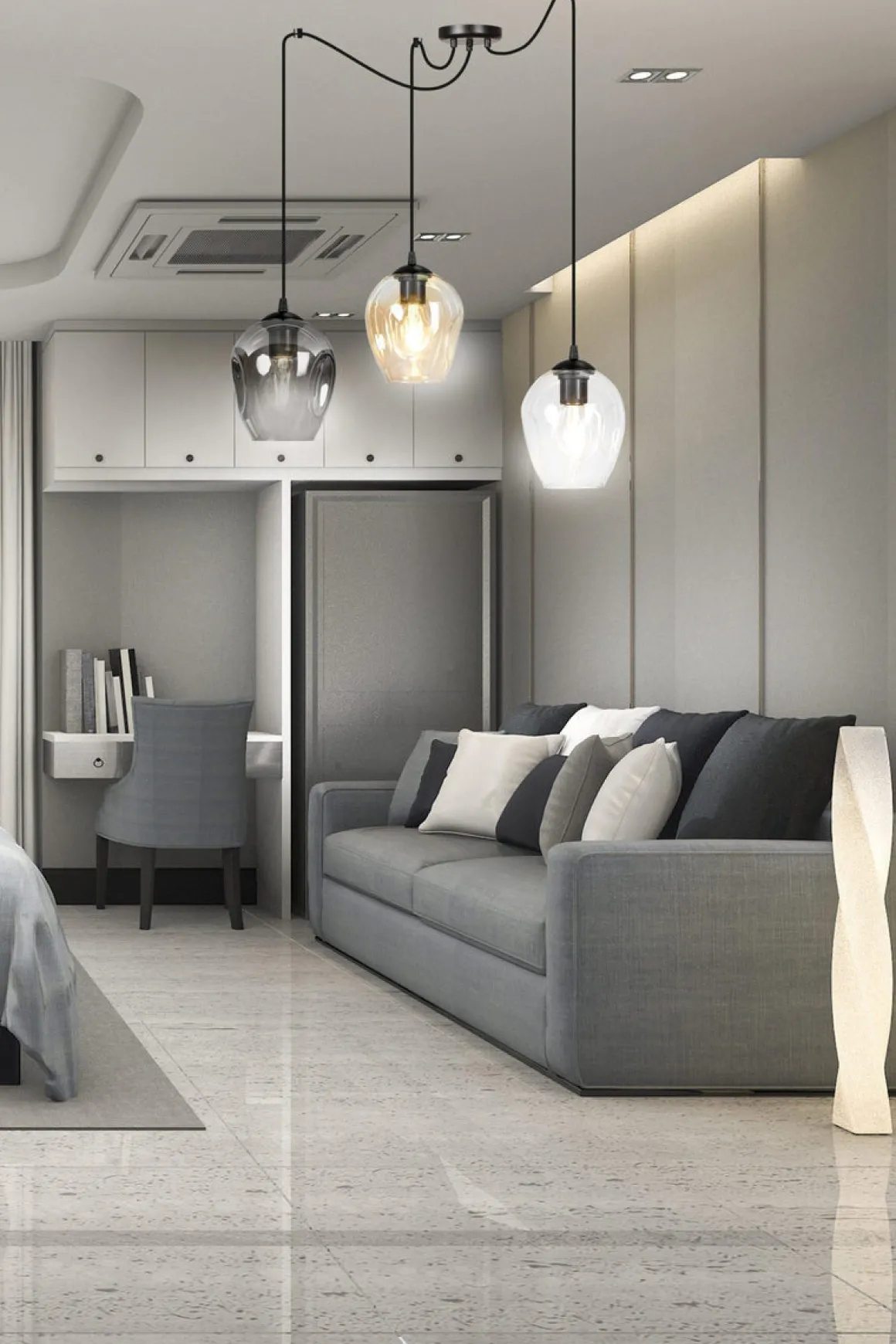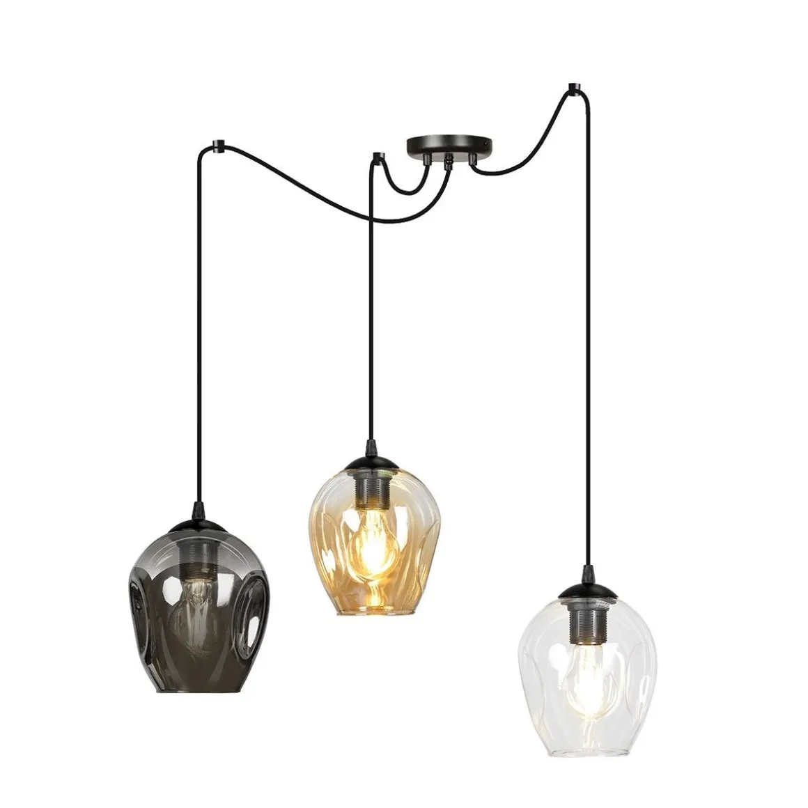 Level er en nydelig pendelserie, som blant annet finnes som 1, 3 eller 5 lys. Modellen er i fargen sort og kan velge mellom klart-, røykfarget- eller amberfarget glass.