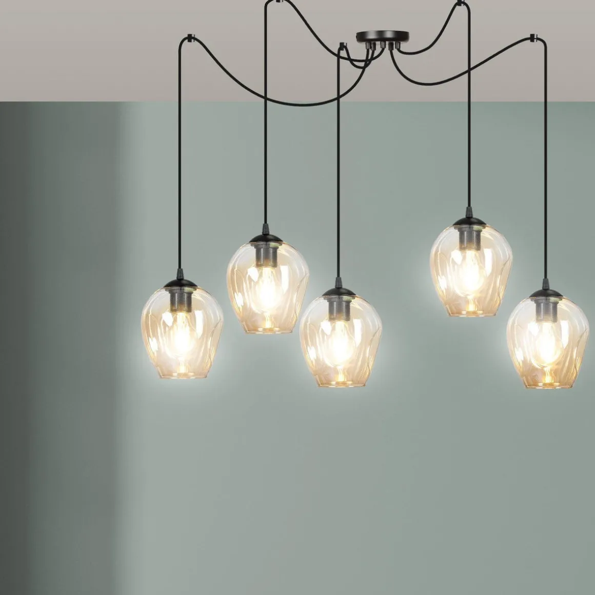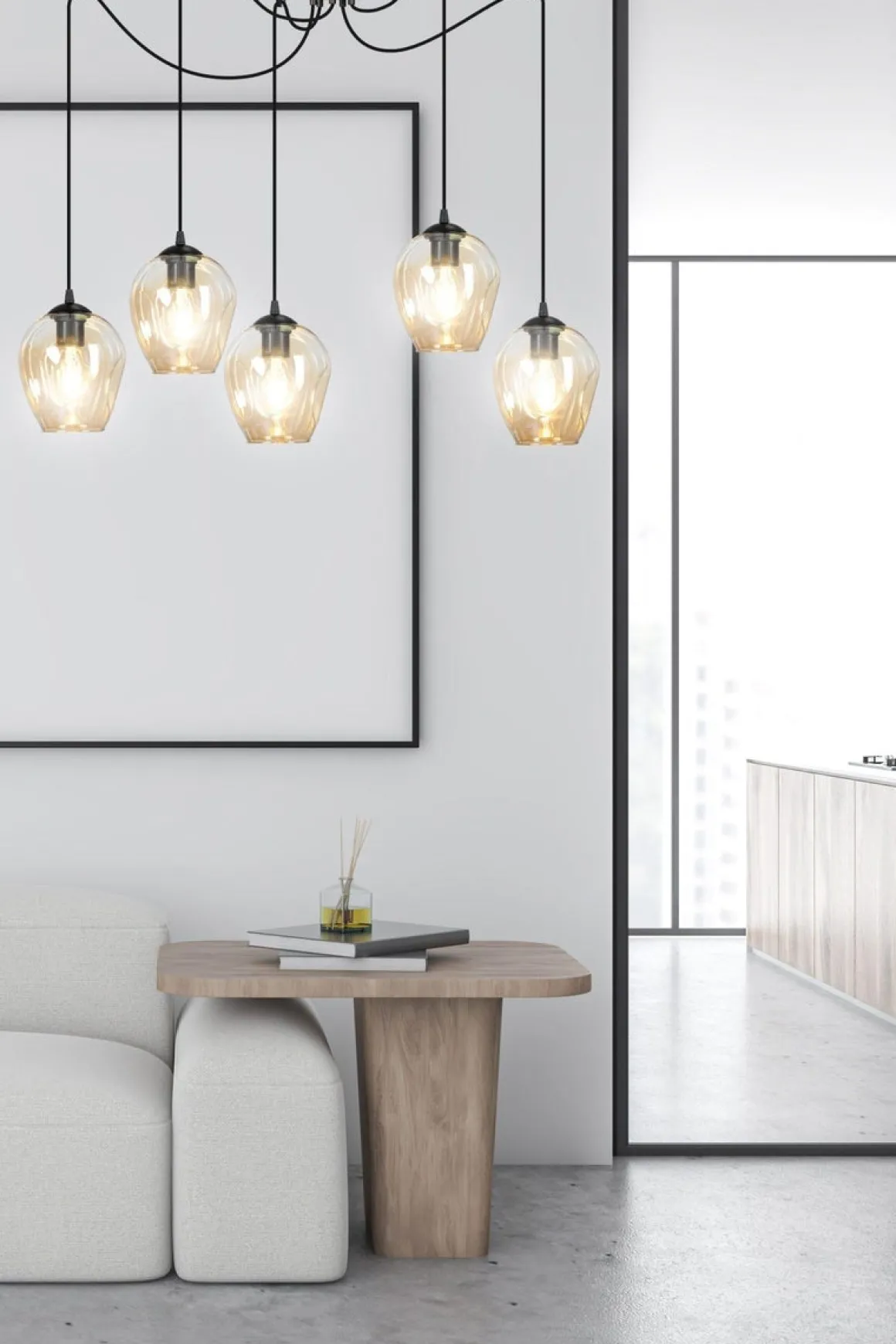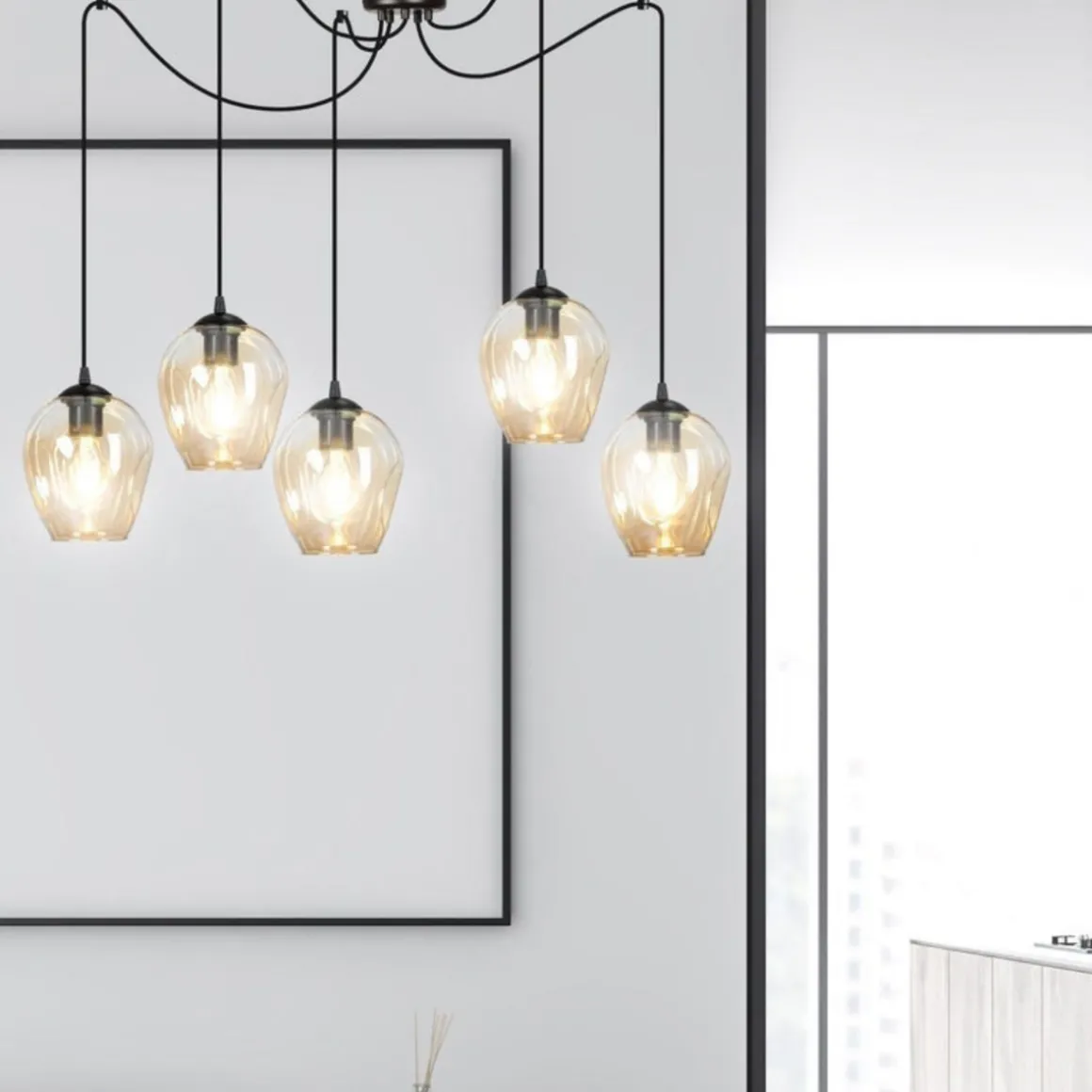 Level er en nydelig pendelserie, som blant annet finnes som 1, 3 eller 5 lys. Modellen er i fargen sort og kan velge mellom klart-, røykfarget- eller amberfarget glass.