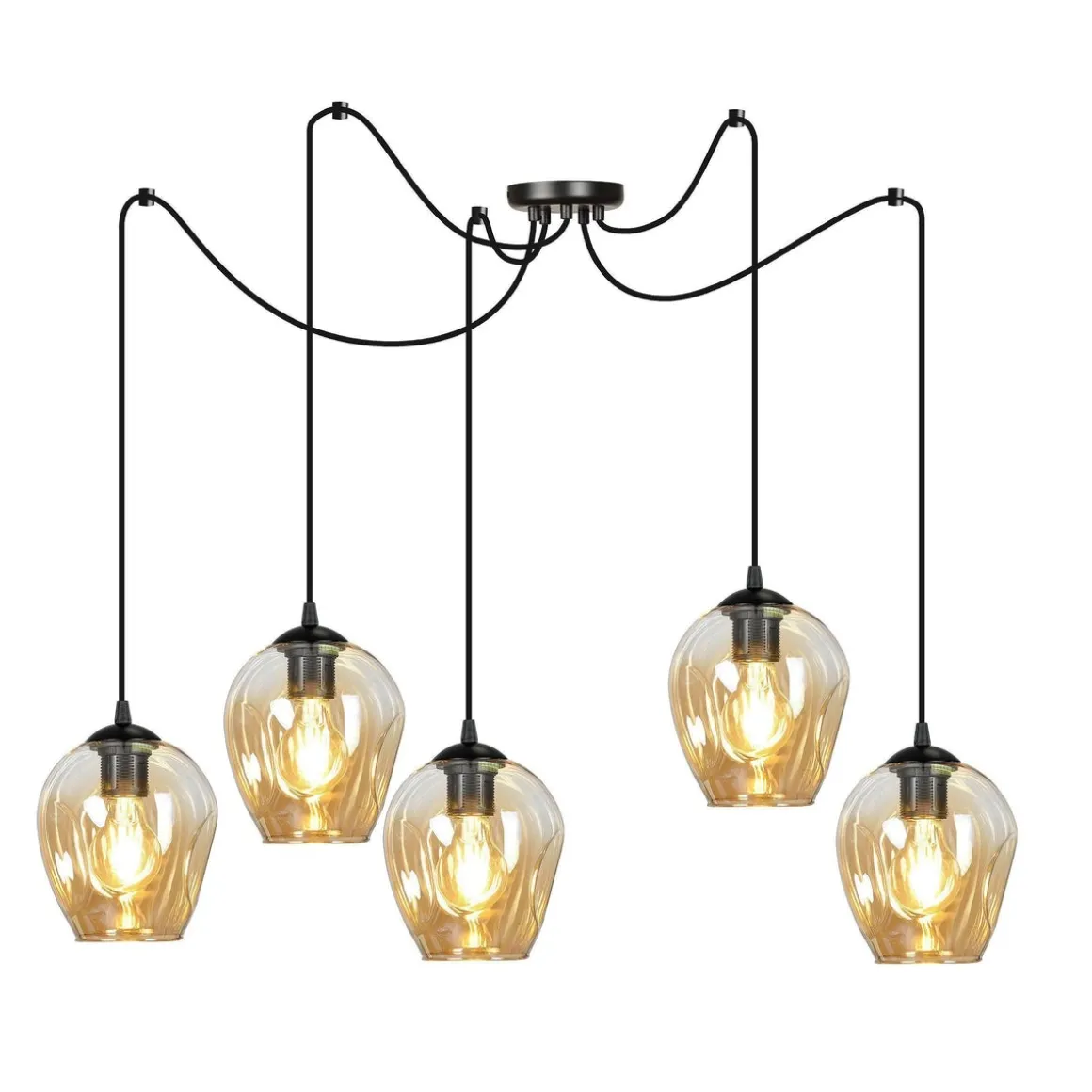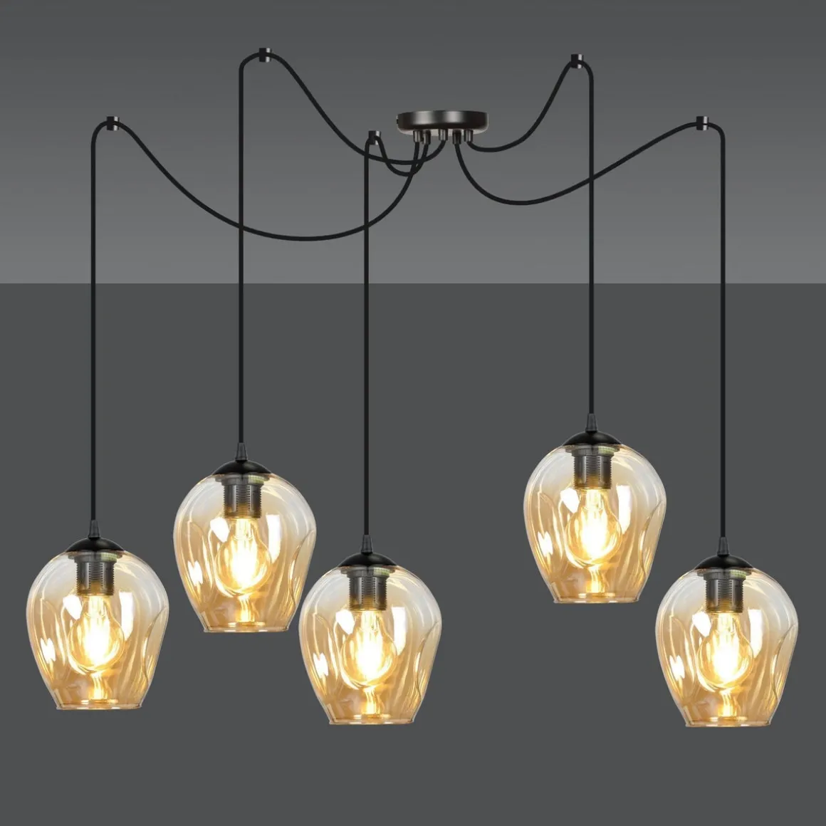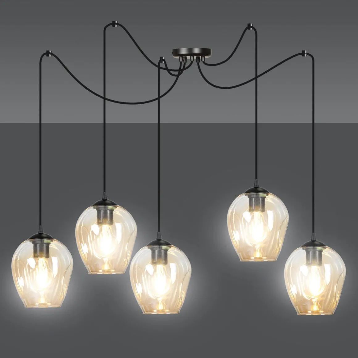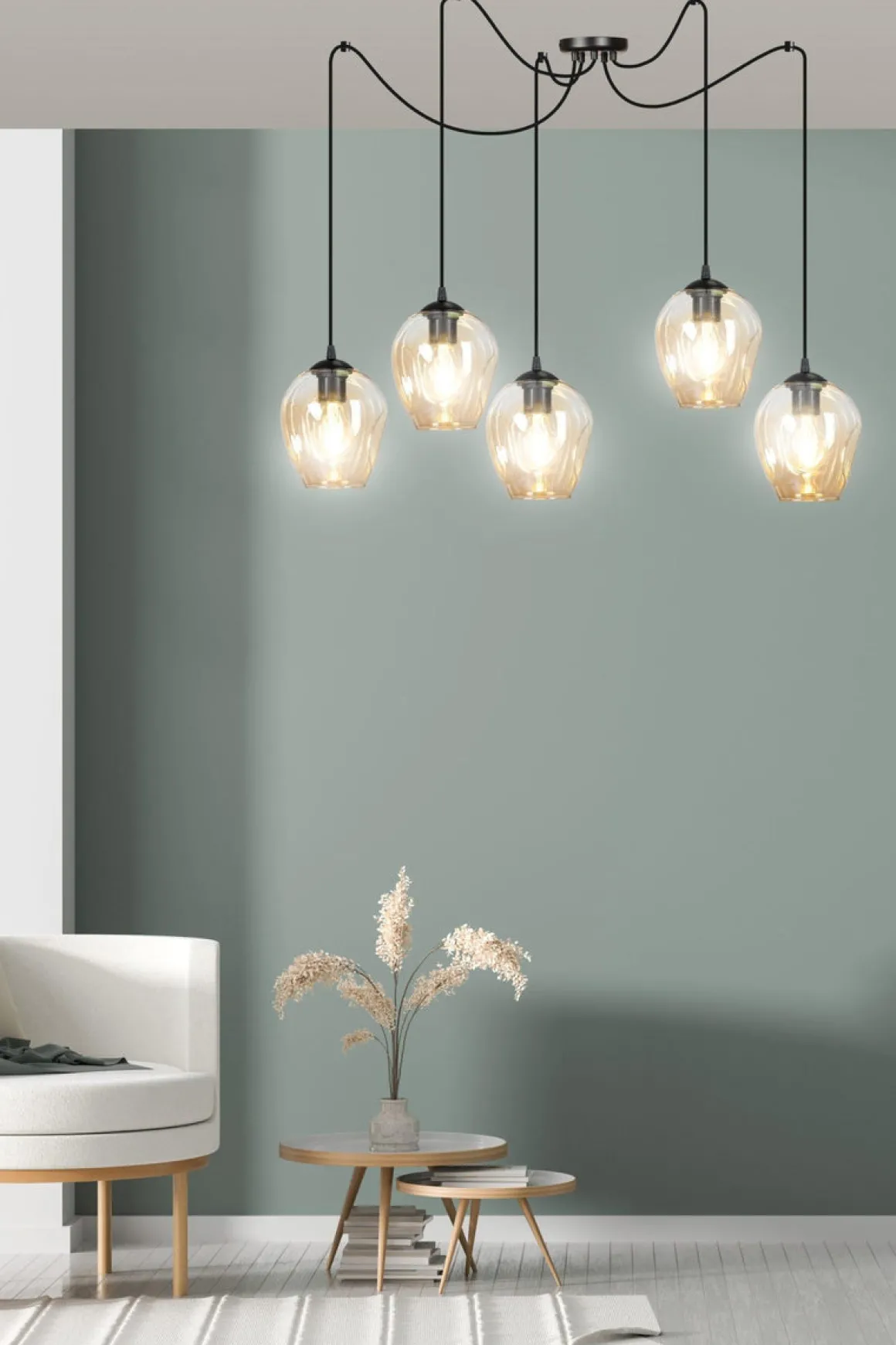 Level er en nydelig pendelserie, som blant annet finnes som 1, 3 eller 5 lys. Modellen er i fargen sort og kan velge mellom klart-, røykfarget- eller amberfarget glass.