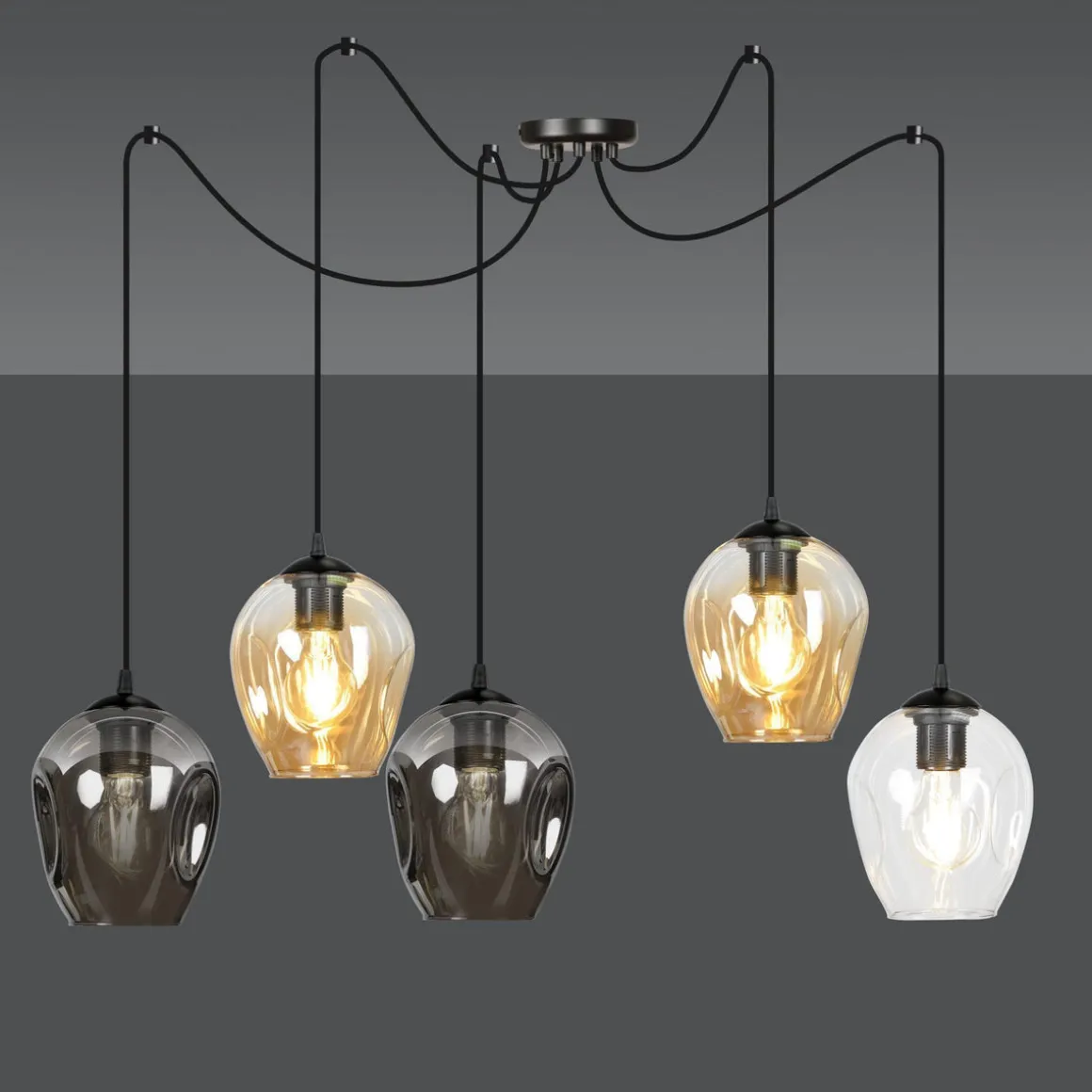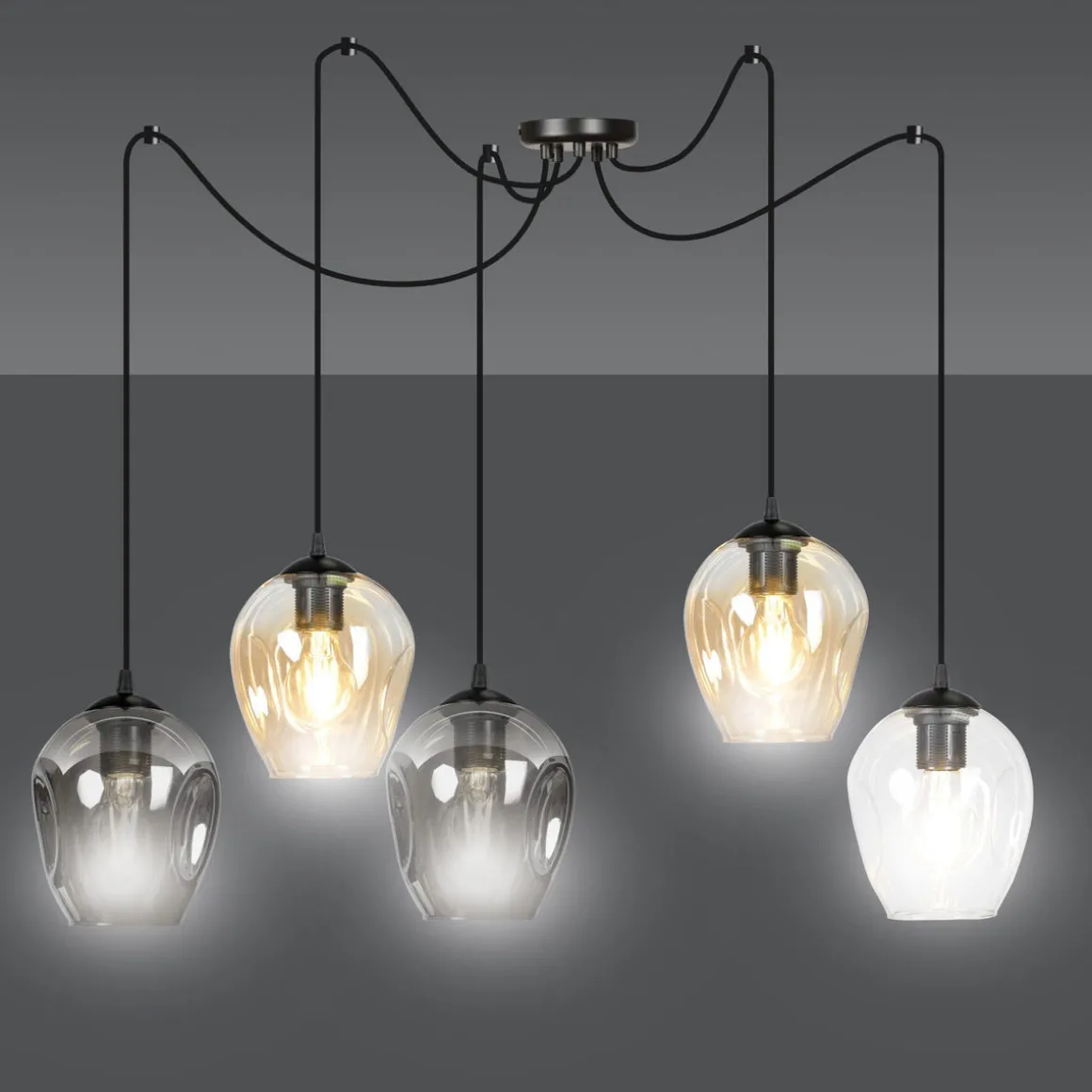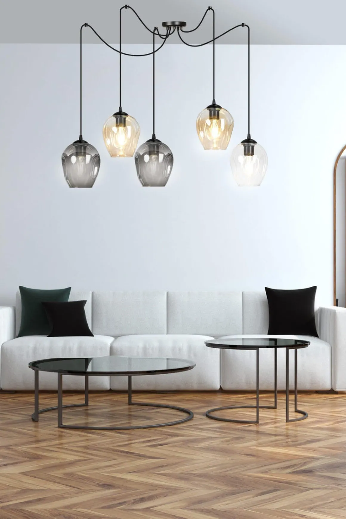 Level er en nydelig pendelserie, som blant annet finnes som 1, 3 eller 5 lys. Modellen er i fargen sort og kan velge mellom klart-, røykfarget- eller amberfarget glass.