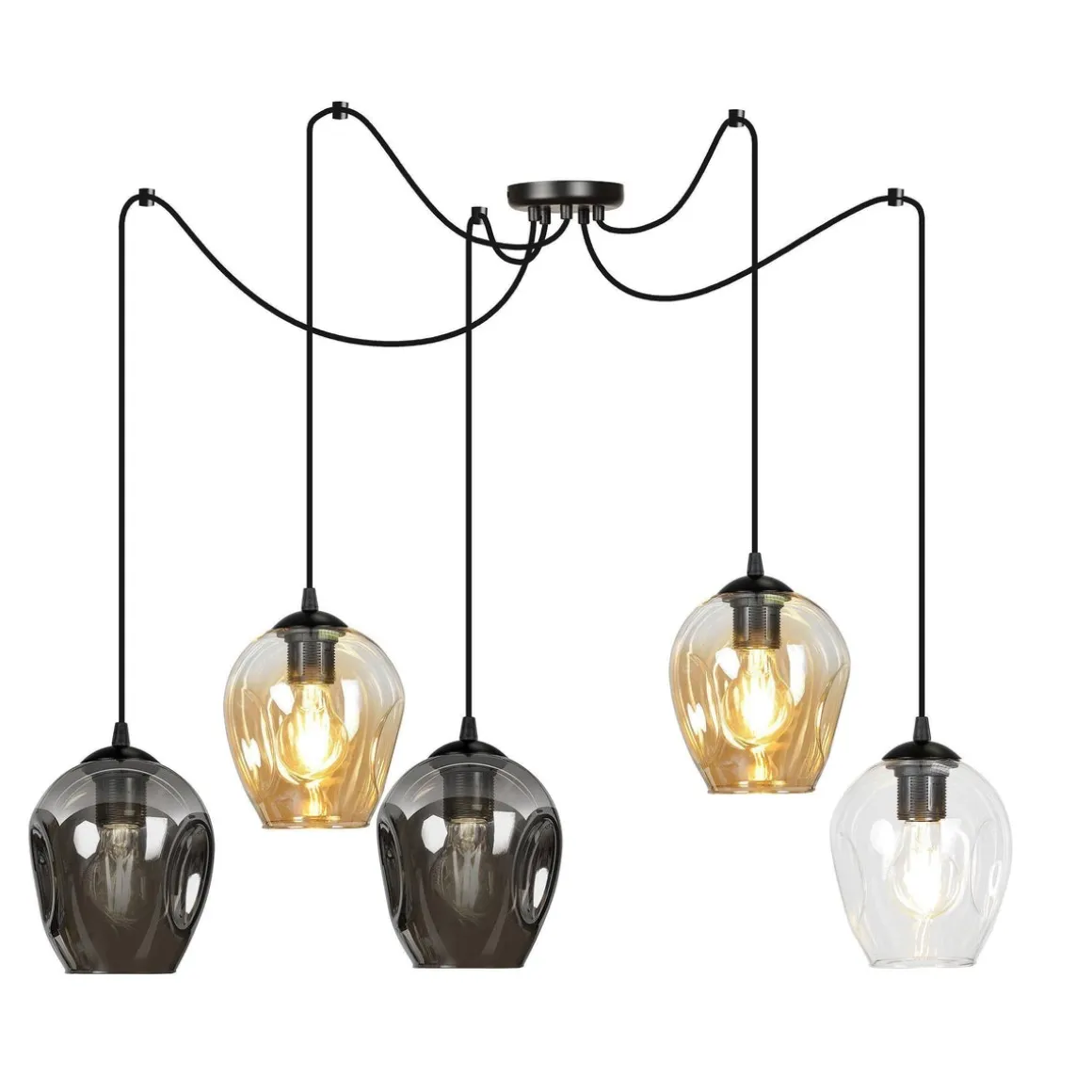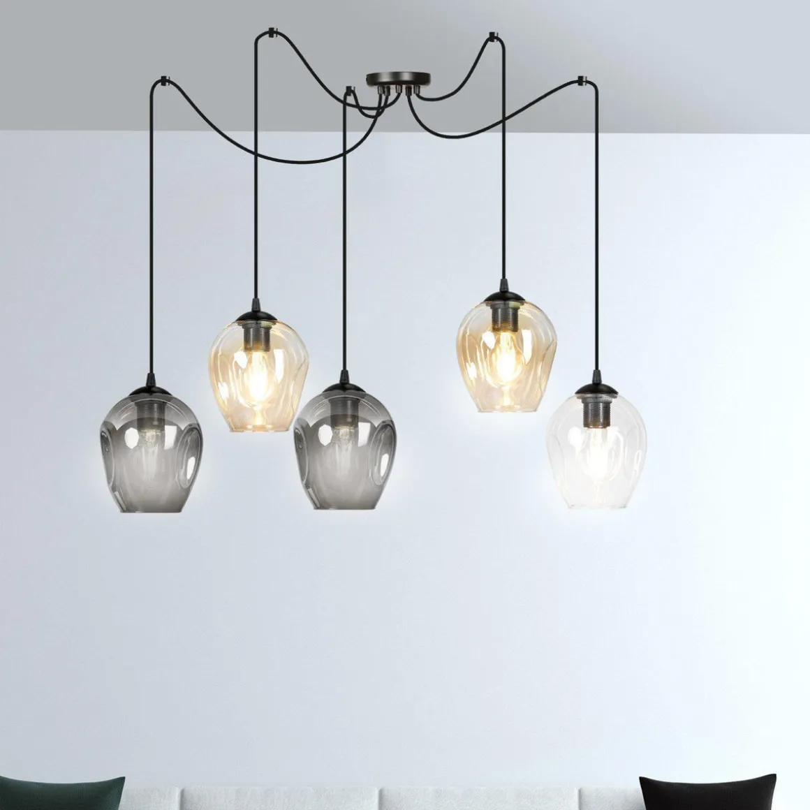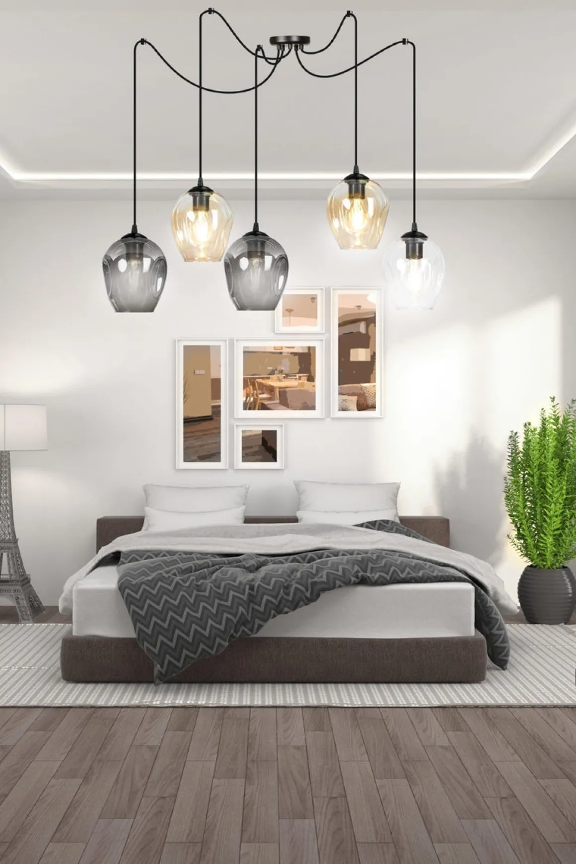 Level er en nydelig pendelserie, som blant annet finnes som 1, 3 eller 5 lys. Modellen er i fargen sort og kan velge mellom klart-, røykfarget- eller amberfarget glass.