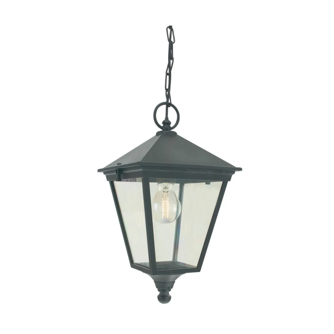 London-serien finnes i svart og hvit og inneholder vegglamper som vender opp og ned, lampe i kjetting, portstolpe, blomsterstolpe og teleskopstolper med 1-3 lyktehoder.
