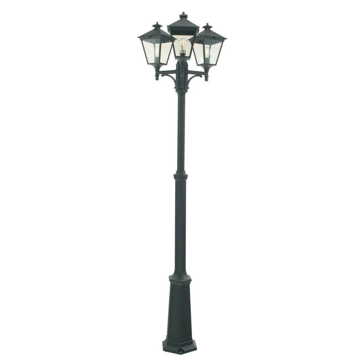 Stolpelamper i klassisk design. Glass i polykarbonat. Festejern og markfeste bestilles separat. London leveres i fargene sort og hvit. Lampen er en del av en serie som inneholder vegglamper som vender opp og ned, lampe i kjetting, portstolpe, blomsterstolpe og teleskopstolper med 1 til 3 lyktehoder. Foten på stolpen har sekskantet sokkel. Avstand mellom boltehull er 20,5cm (3 bolter).