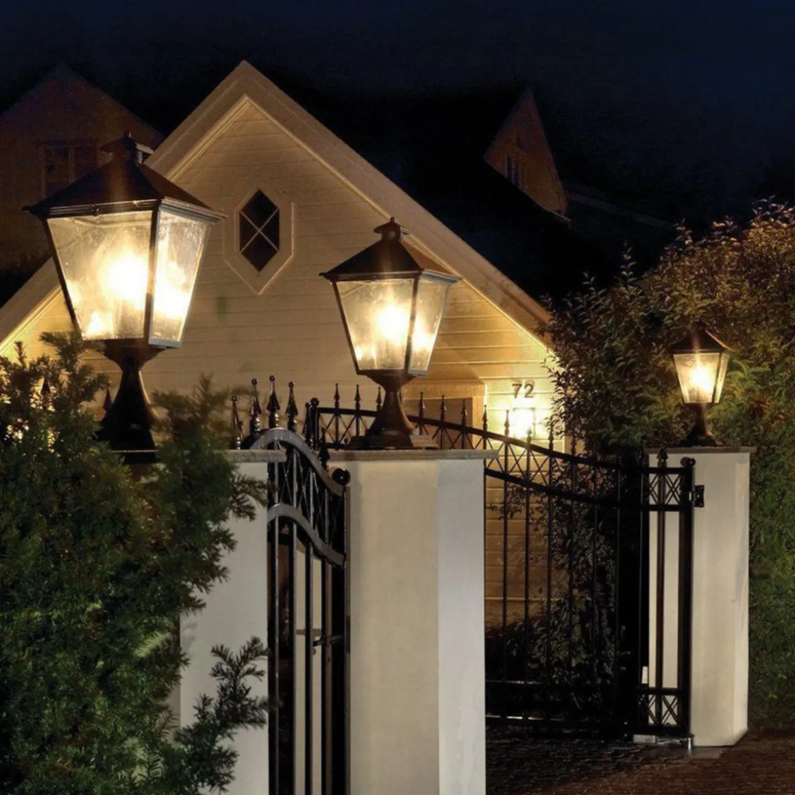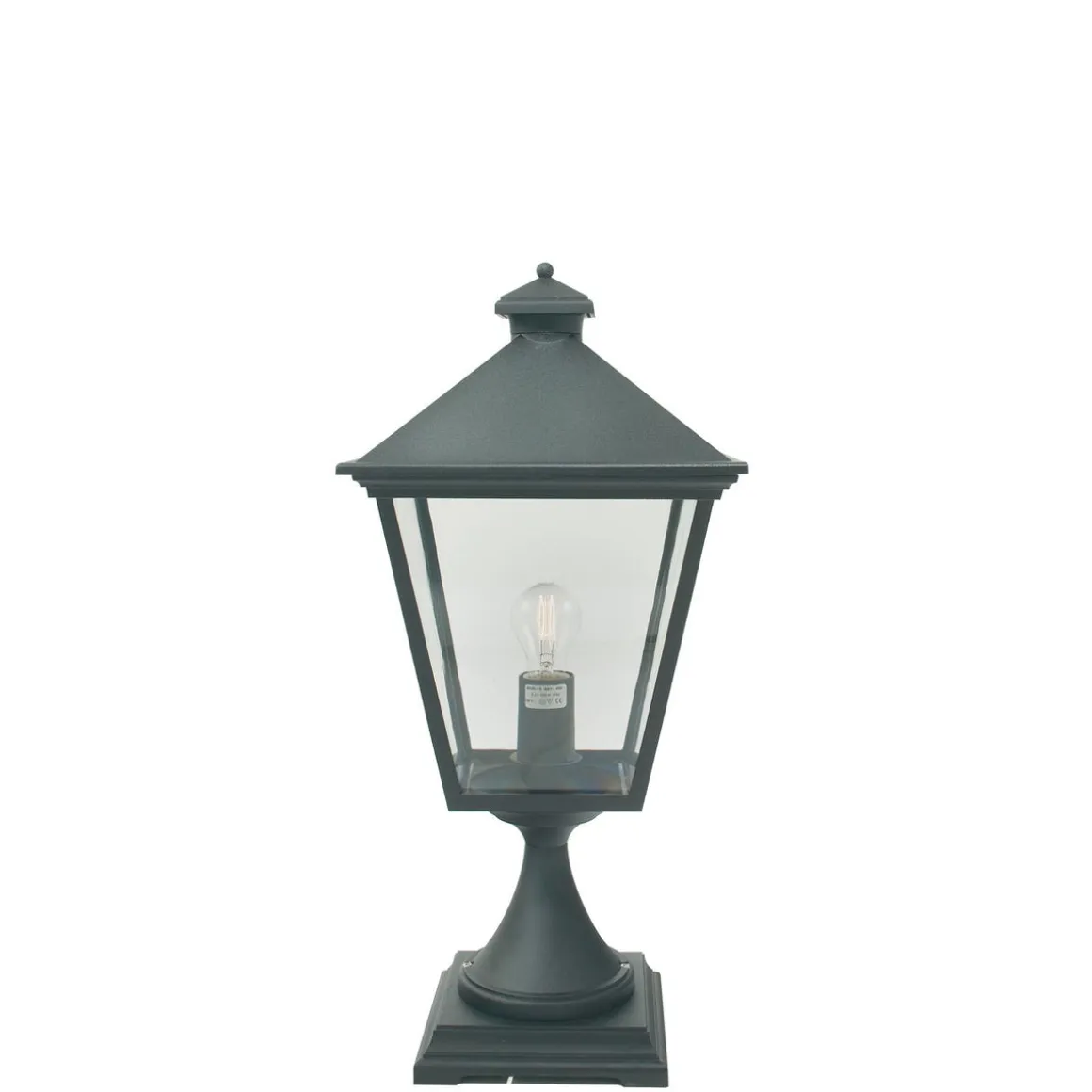 London-portstolpe i klassisk design med glass av slagfast klar polykarbonat. London finnes i fargene sort, grønnpatinert og hvit.