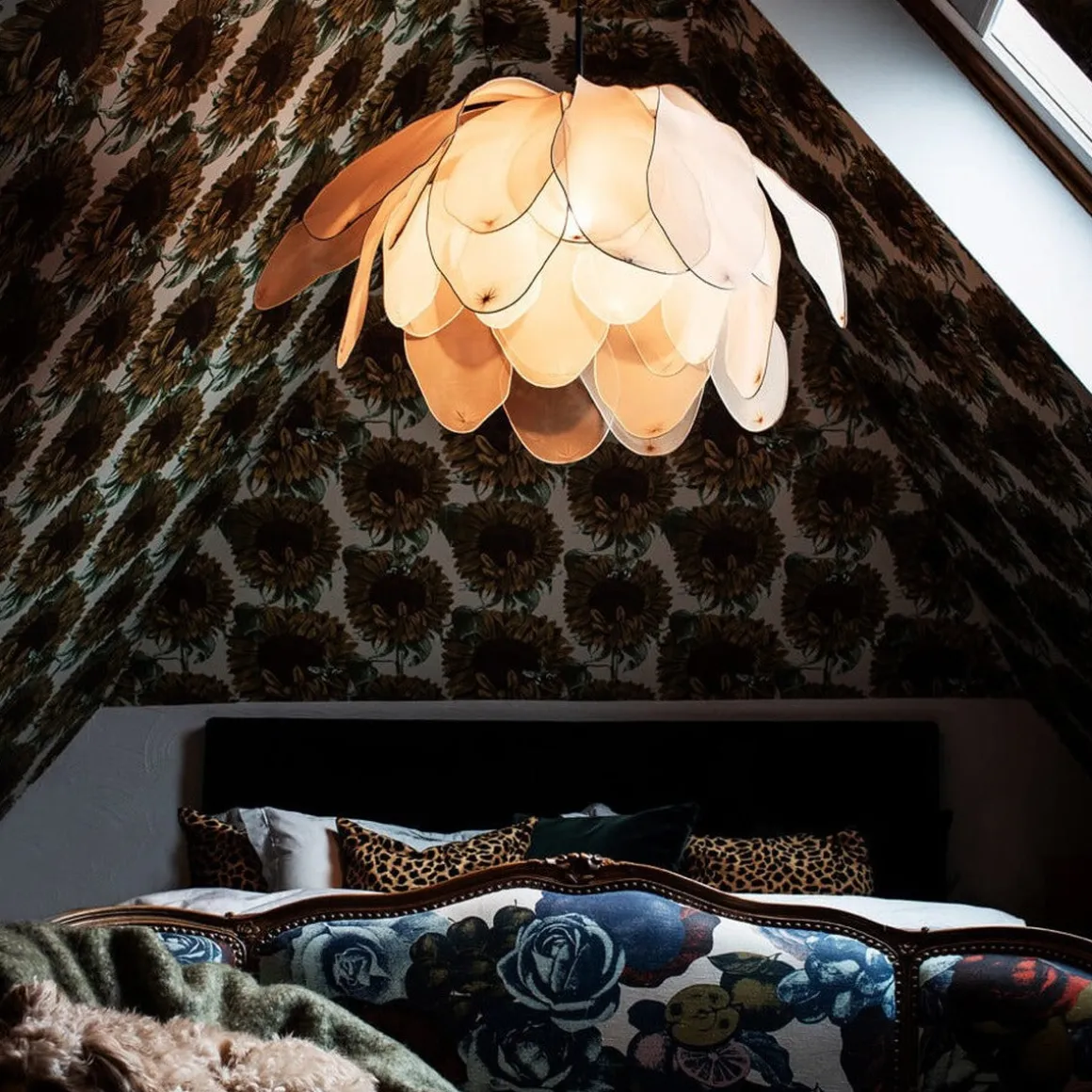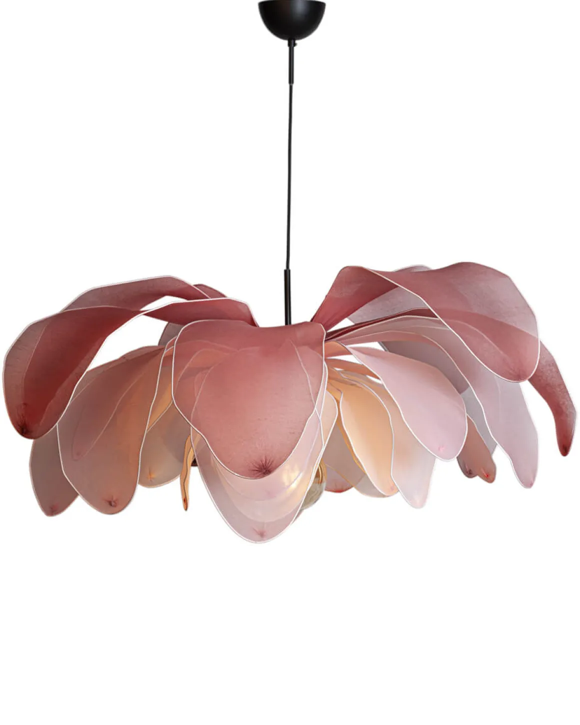 Med sine fem lag bøyelige stoffblader i forskjellige toner gir denne lampen deg friheten til å forme den etter dine ønsker. Skjermens imponerende 80 cm i diameter og 59 cm i høyden skaper en praktfull tilstedeværelse i rommet ditt.