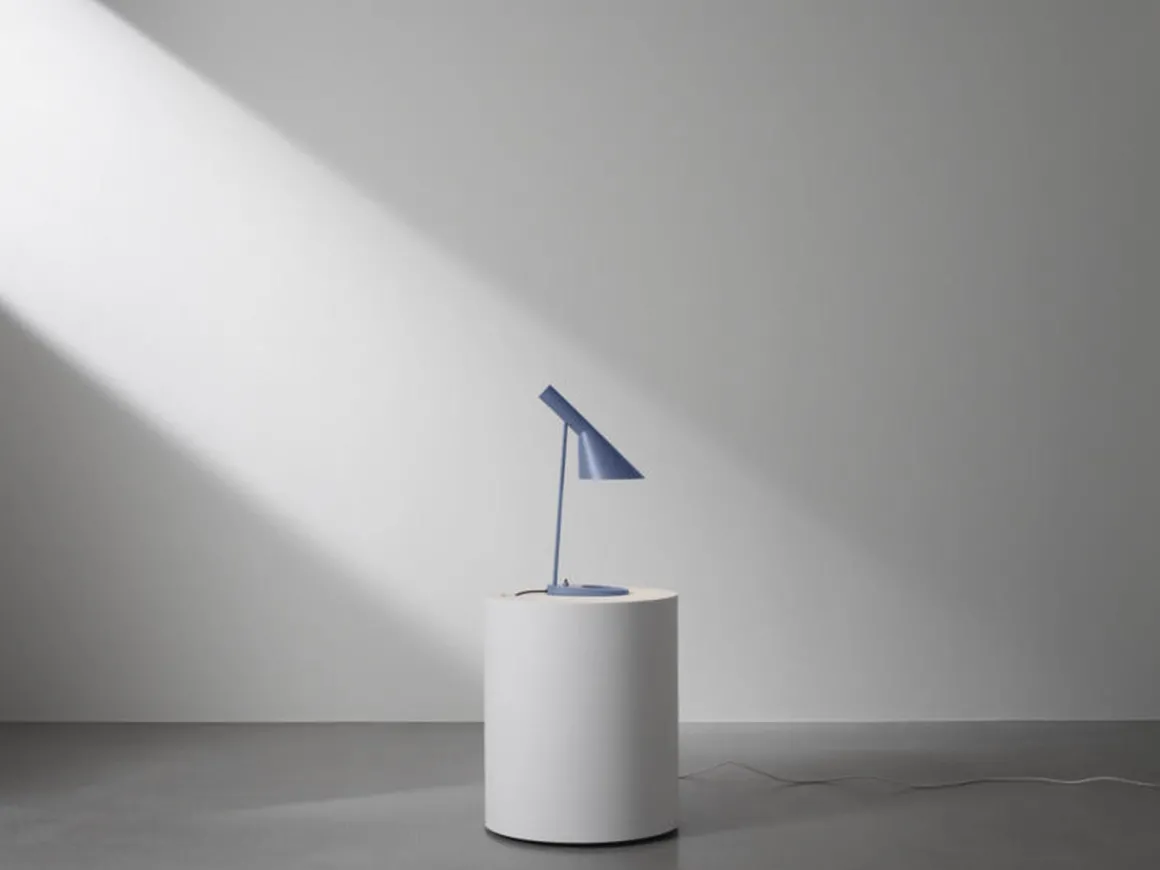 AJ bordlampe fra Louis Poulsen har et ikonisk design med sine karakteristiske former. Lampen har et direkte , retningsbestemt lys. Vinkelen på skjermen kan justeres for å optimalisere lysfordelingen. Skjermen er malt hvit på innsiden for å gi et mykt og komfortabelt lys. Lampen har bryter på lampefoten. Et must for design-interesserte.