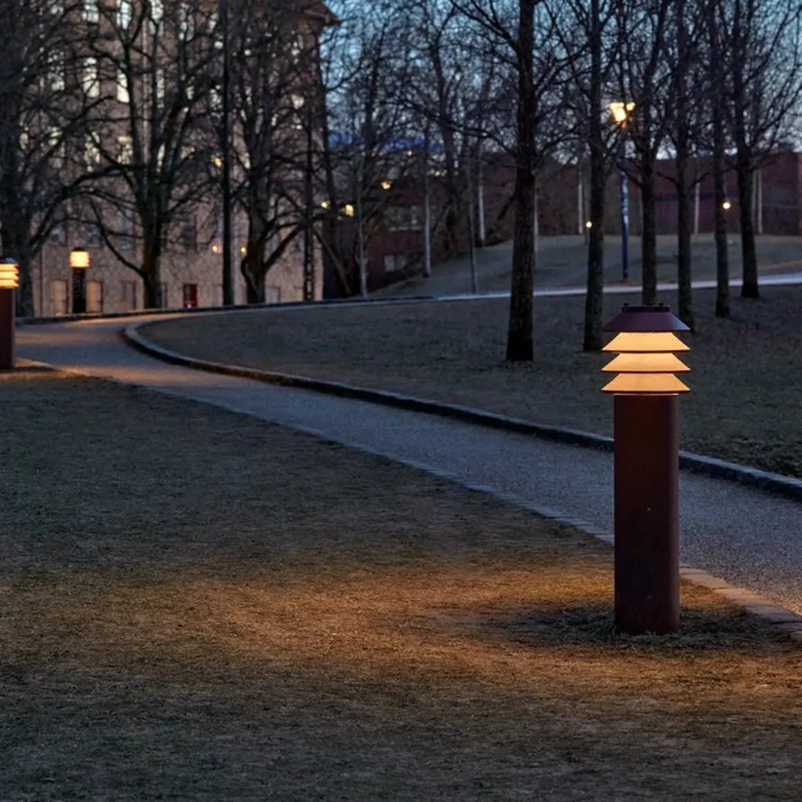 Bysted Garden er et tillegg til den ikoniske Bysted, som ble designet av Peter Bysted i 1975. Designideen av pullerten var å sette skjermene på en måte som skaper et spennende mønster på bakken. Valget av corten-stål som materiale var revolusjonerende på den tiden, og er fremdeles en stor del av produktets identitet. Bysted Garden er en nesten identisk, nedskalert versjon av den opprinnelige Bysted-pullerten. Den er perfekt for enkel montering på stedet for å forbedre kvaliteten på lyset i både næringslivs- og boligområder. Den nedskalerte designen er basert på det samme konseptet som den originale Bysted, med fire ringer som fordeler lyset nedover, mens de gløder om natten og gir produktet særpreg og karakter. Det ble foretatt noen mindre endringer på den opprinnelige Bysted-designen. Boltene på toppen av hagearmaturen er tatt bort for å gi et mer strømlinjeformet, minimalistisk utseende. Bysted Garden fås som standard i en corten-fargeutførelse eller i aluminiumsutførelse. Armaturen er fremstilt i robust. støpt aluminium som ikke patineres over tid. Bysted Garden er tilgjengelig i to forskjellige høyder, og gir mulighet for et bredere utvalg av installasjoner fra inngangspartier til plantekasser på takterrasser. Bysted Garden er koblet til en adapter, som kan drive opptil fire pullerter, med en maksimal avstand på 30 meter til siste pullert. Armaturen kan virkelig skille seg ut både individuelt og i installasjoner med flere enheter. Det er like vakkert egnet til en naturlig setting som det er i et urbant hagemiljø, hvor det vil skape en attraktiv atmosfære.