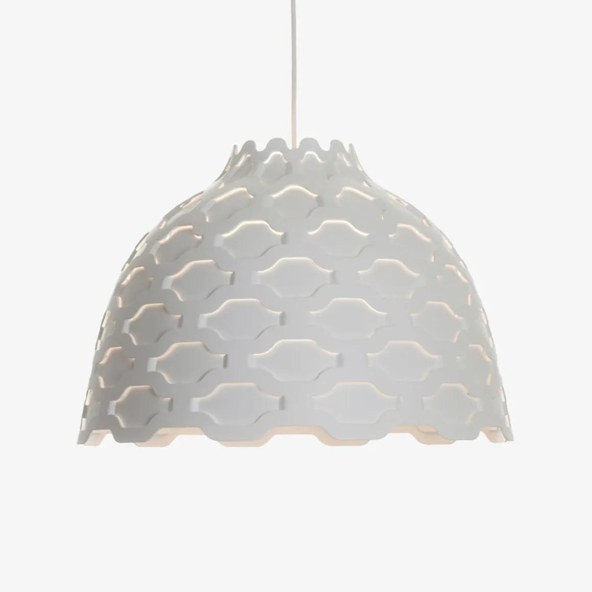 - Materiale: Skjerm: Stanset og preget aluminium. Oppheng: Pulverlakkert trykkstøpt aluminium. Diffusering kule: Munnblåst, hvitt opalt glass.