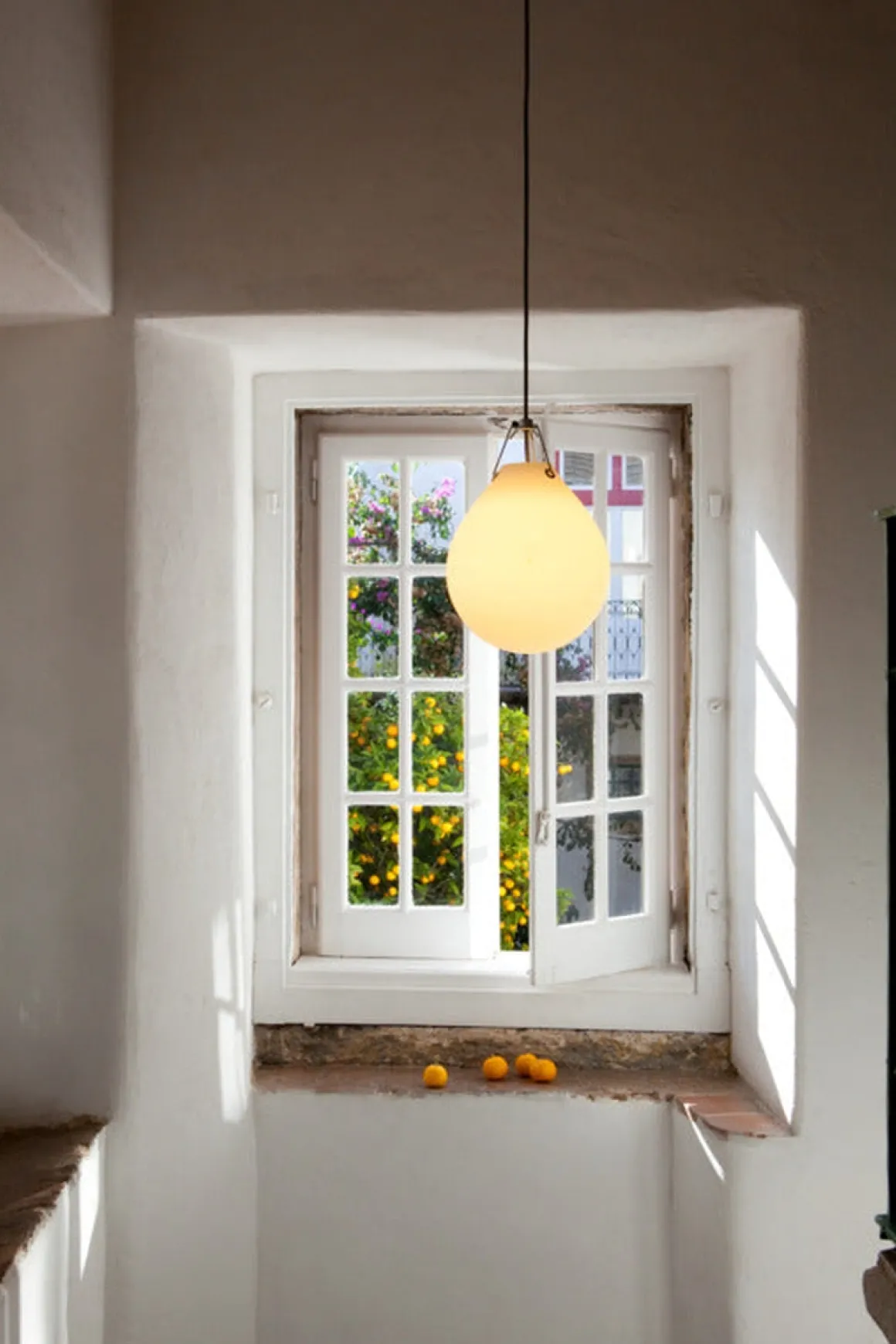 Taklampen Moser sender ut et dempet lys og tykkelsen på glasset bidrar til at pendelen gir en svært behagelig lysfordeling.