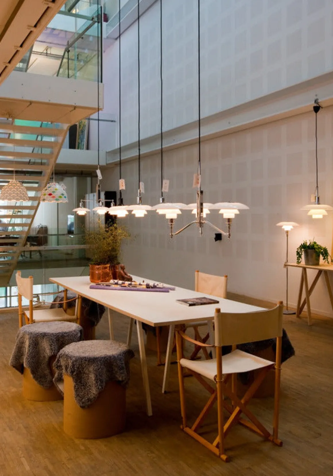 Lysekronen PH 3/2 Akademy er designet etter et prinsipp basert på et reflekterende tre-skjermssystem som retter størstedelen av lyset nedover. Skjermene er laget av munnblåst trelags opalt glass som er blankt på toppen og sandblåst matt på innsiden. Dette gir en myk og diffus lysfordeling.