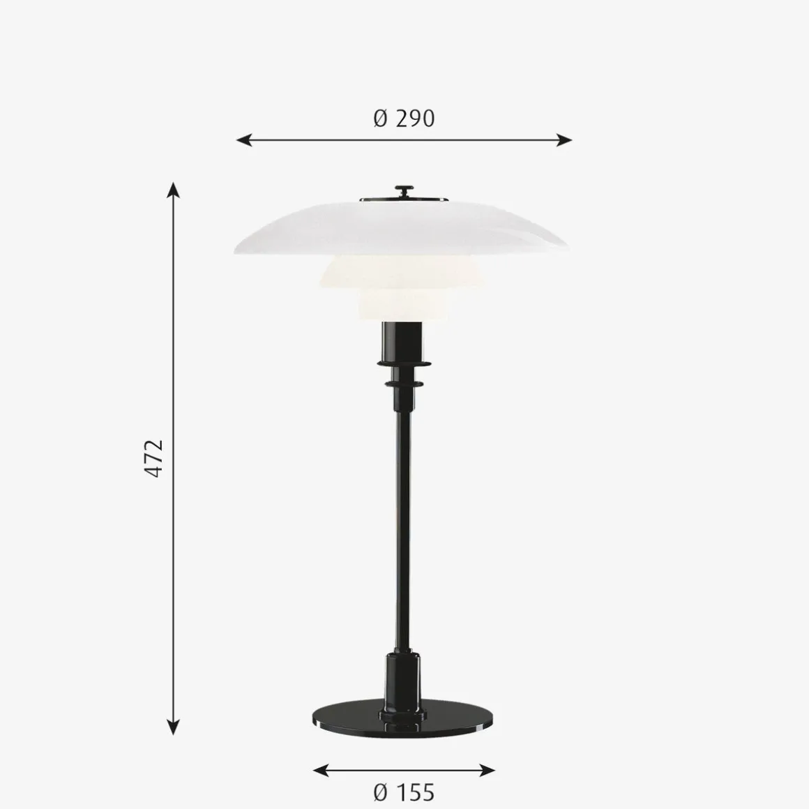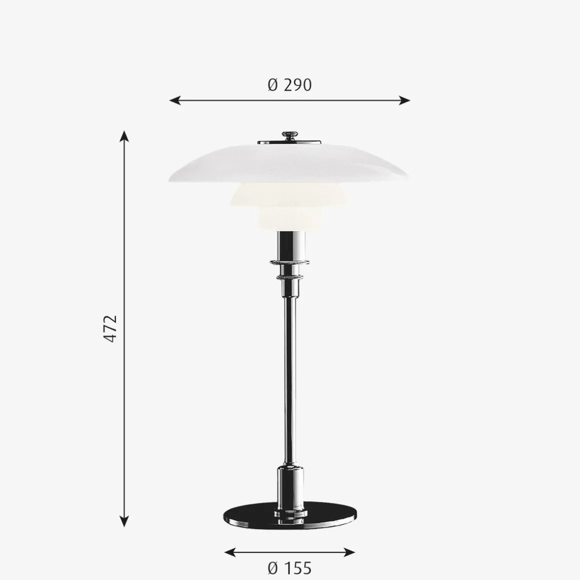 Armaturen gir en myk lysfordeling. PH 3/2 er designet etter prinsippet om et reflekterende flerskjermssystem som gir en harmonisk og blendfri belysning. Designen på skjermen er basert på en logaritmisk spiral, der midten av lyskilden er plassert i spiralens brennpunkt.