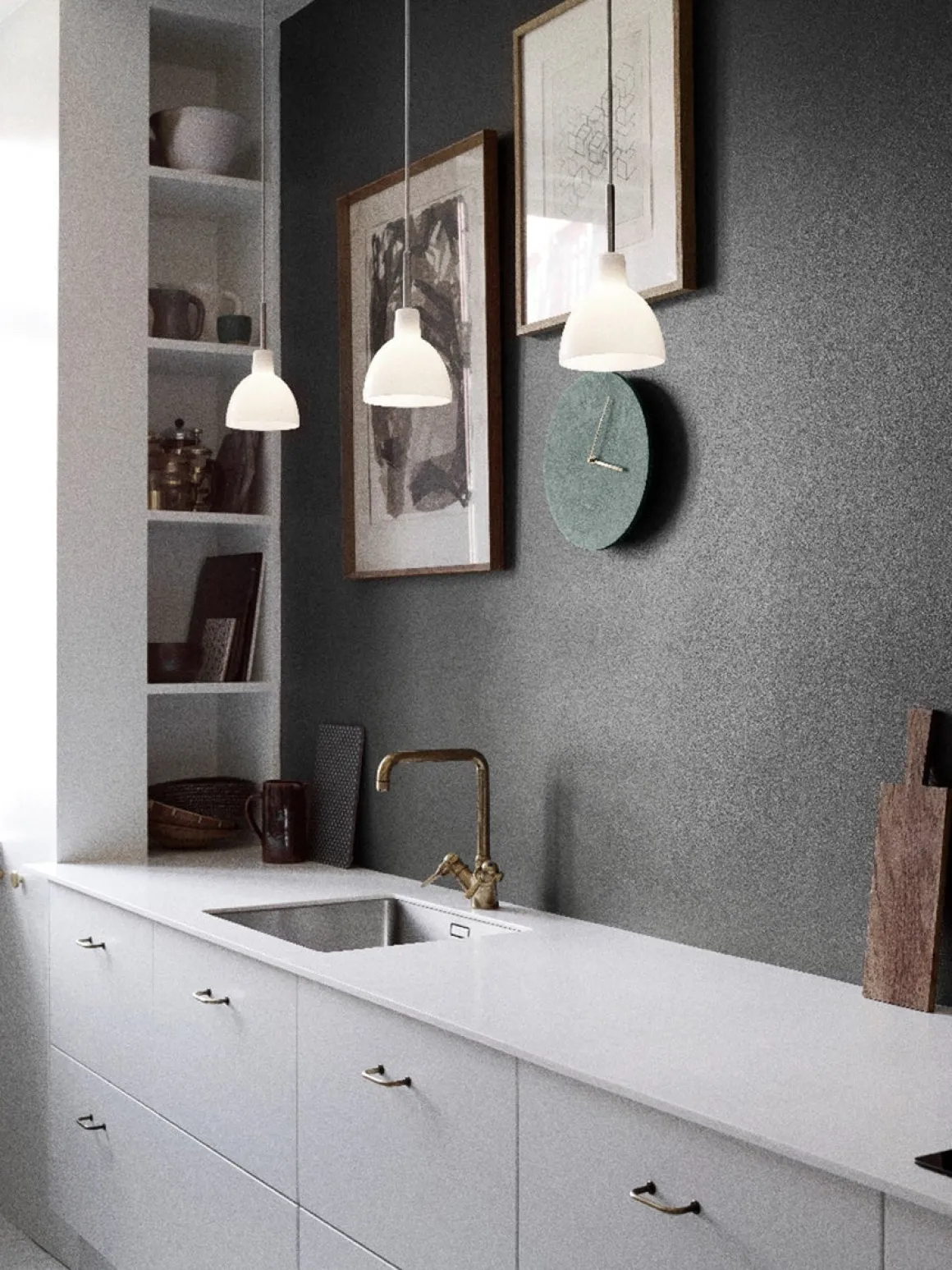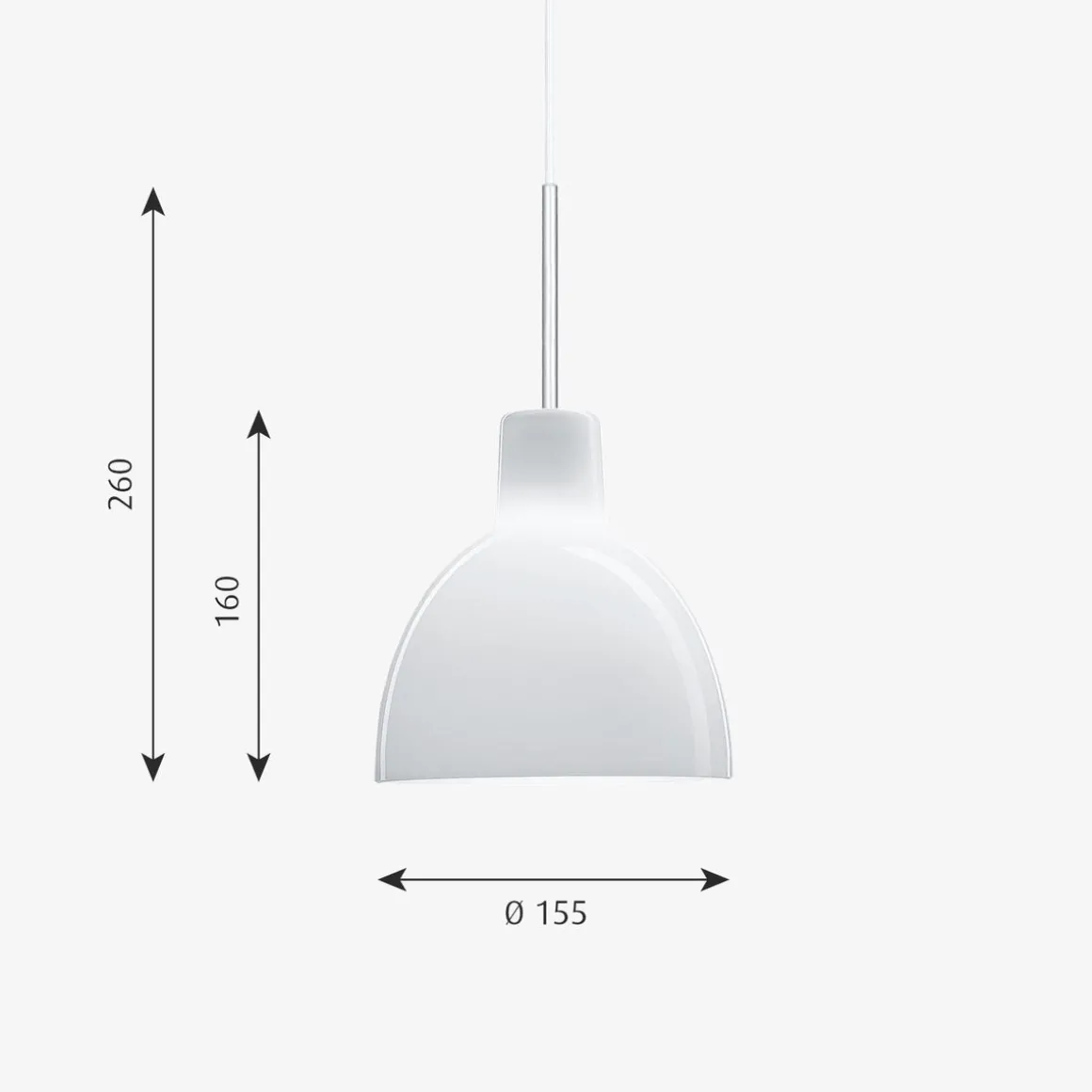 Toldbod pendelen i glass gir et blendfritt, primært nedadrettet lys. Det opale glasset gir en behagelig og jevn belysning av området rundt armaturen.