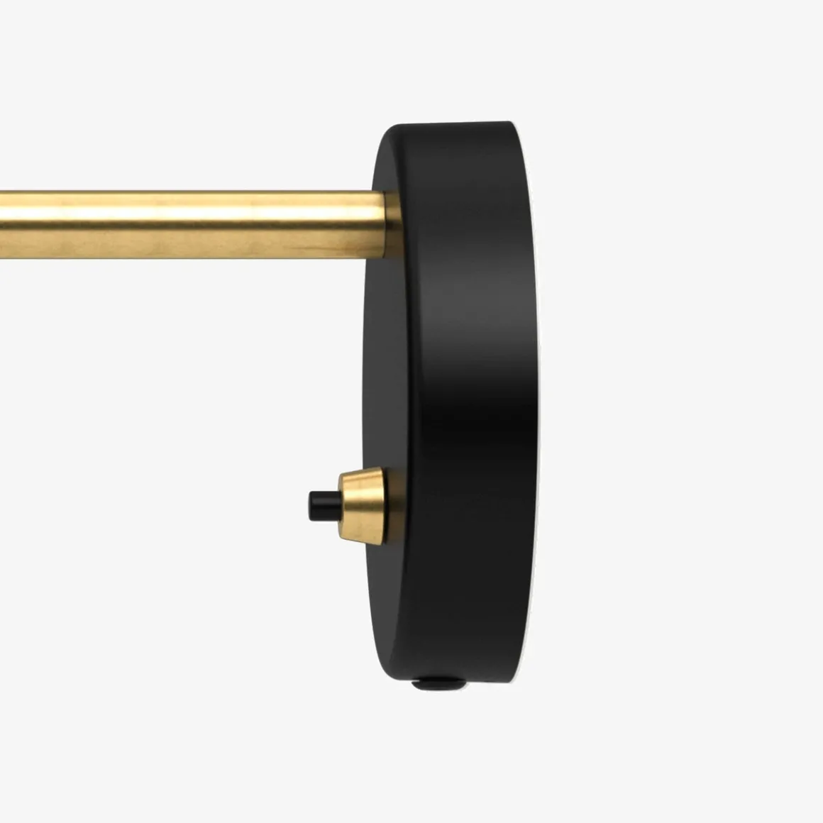 Vær oppmerksom på at overflatene av messing er ubehandlede. Dette betyr at overflaten vil endres over tid og utvikle en patina. Funksjon for å angi et fast lysnivå hver gang lampen er koblet til strømnettet. LED-driver integrert i veggboksen. To lysnivåer, 50 % eller 100 %. Tidsurfunksjon som automatisk slår av lyset etter et gitt antall timer, kan velge mellom av/4 timer/8 timer. Justerbar (opp og ned) og roterende (til siden) lampeskjerm.