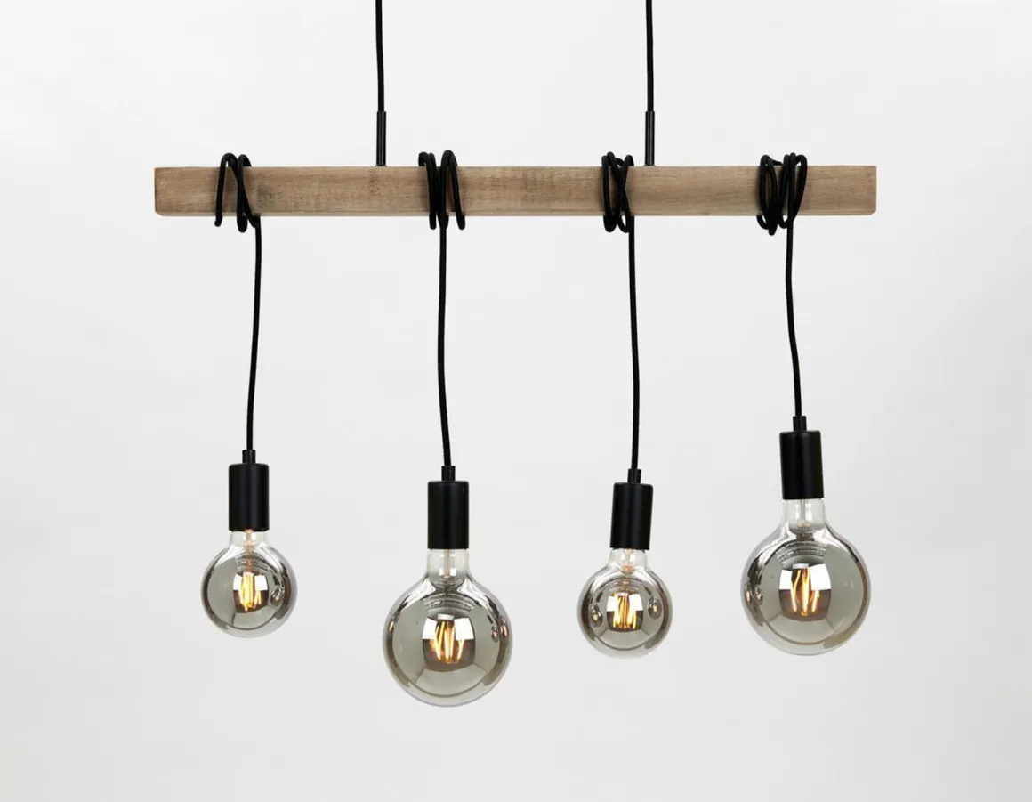 Luga er en nydelig og trendy taklampe. Bestem selv høyden på de enkelt pæreholderne og dekorer lampen med noen flotte dekorative lyspærer.