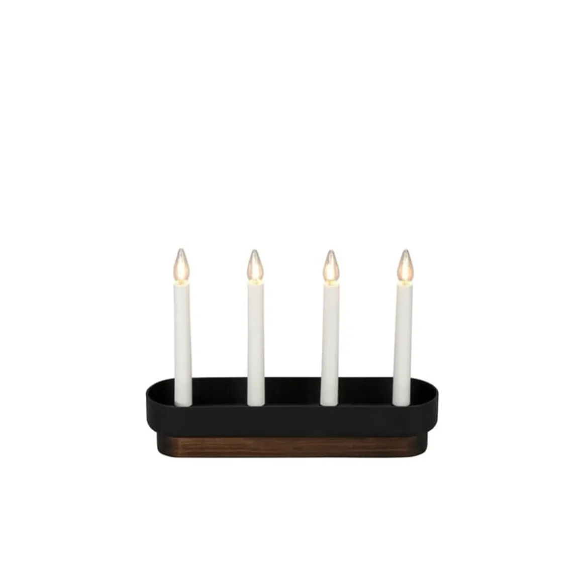 Adventstake 4 armet i plast – lakkert valnøtt. Ledning med bryter.
