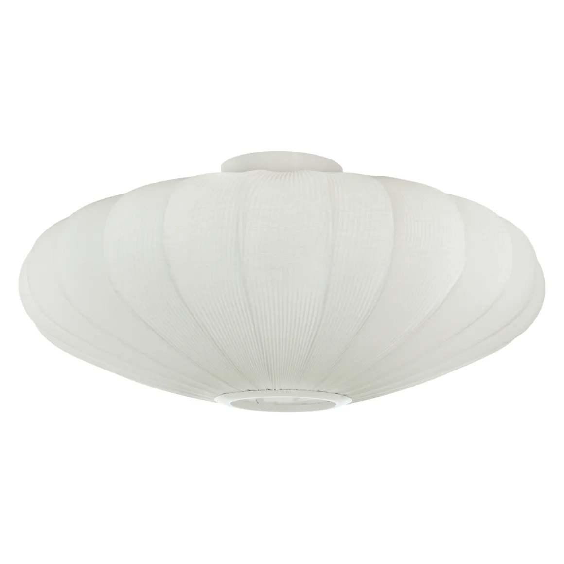 Mamsell en flott plafond som med sin myke form passer godt på for eksempel soverommet. Den hvite tekstilen gir et mykt og behagelig lys. Du behøver en lyspære med E27-sokkel til lampen. Krokoppheng med hvit takkopp i metall.