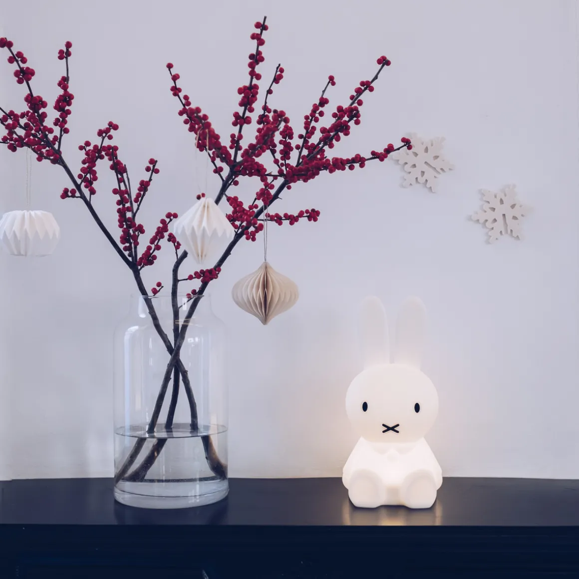First Light er tilgjengelig i forskjellige versjoner. Denne 30 cm høye nattlampeversjonen med dimmer og hvilemodus er en del av samlingen ‘Miffy and Friends’ av det nederlandske designmerket Mr Maria.
