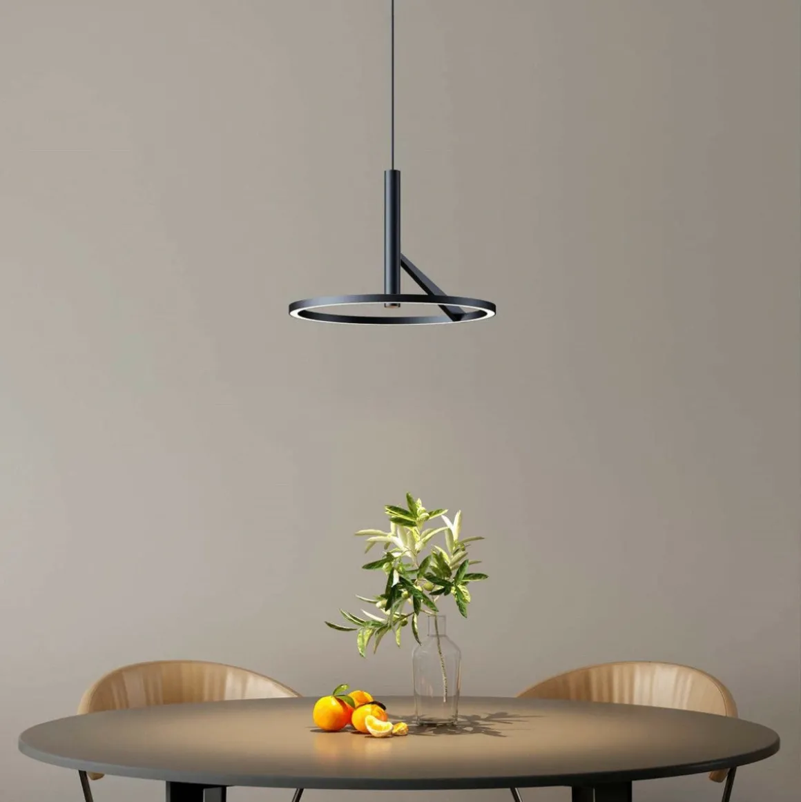 Dekorativ pendel med direkte lys i ringen og spotlys fra tuben i midten. Leveres med 175cm ledning, hvor høyden enkelt kan reguleres før og etter montering.