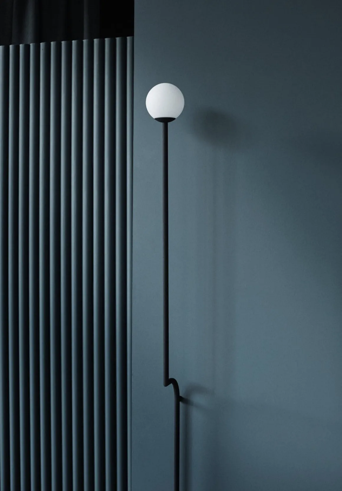 Thinking of the typical New York balcony racks in black metal and the round streetlights on Brooklyn Bridge. Those ingredients resulted into a pendant lamp where 4 equal parts are linked on each other. Turning each part makes it look like a mobile. The wall lamp and table lamp in the same collection are minimalistic.