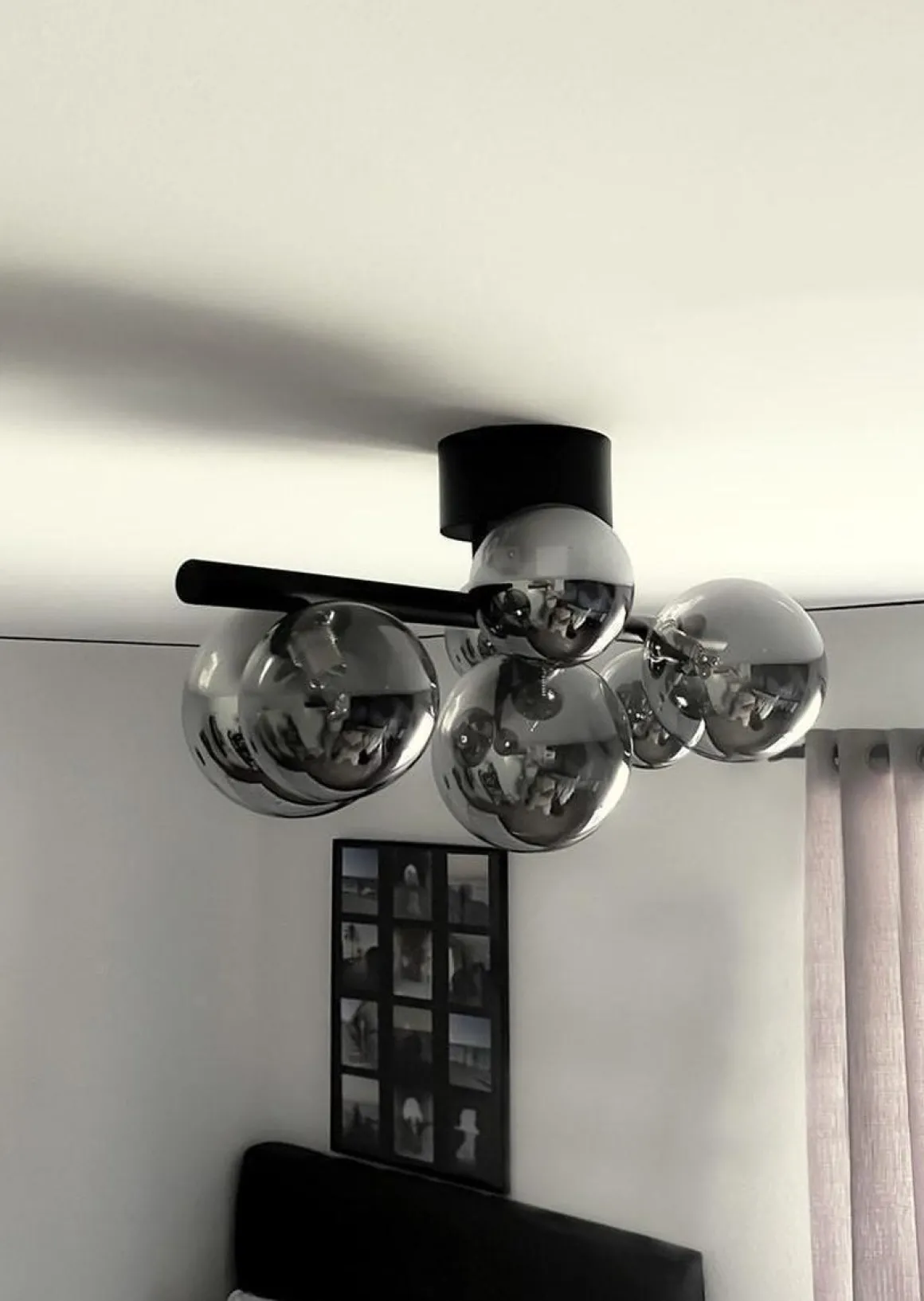 Molekyl er en nydelig og moderne taklampe med opalhvite glasskuler. Du behøver 7 stk lyspærer med G9-sokkel til lampen.