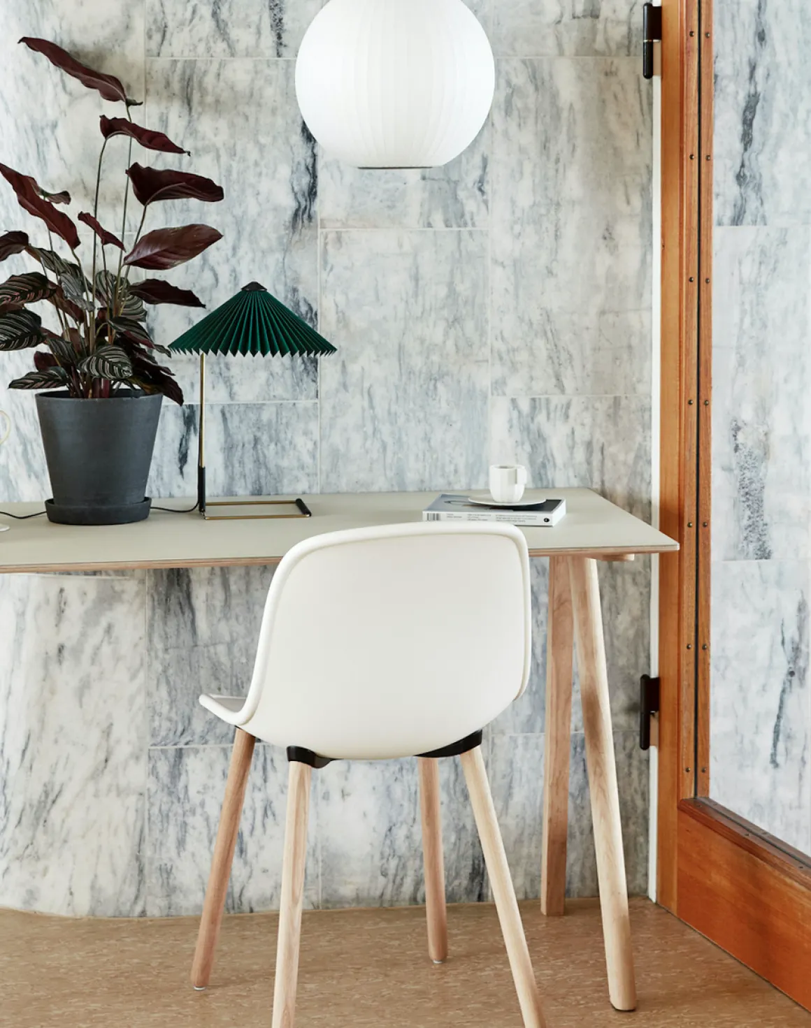 Designet av banebrytende amerikanske designer George Nelson i 1947, først produsert i 1952. Bubble Lamp signaliserte en revolusjon i lysindustrien. Han brukte en plastspray utviklet av det amerikanske militæret over en stålramme for å produsere disse myke og vakre lampene. George Nelson ble født i Connecticut, USA, og var en av de mest innflytelsesrike personene i den avgjørende tidlige perioden med moderne design. Han var utdannet hos Yale som arkitekt og kunstner. To formative år i Roma satte han i kontakt med verdens ledende modernister som Gio Ponti, Le Corbusier, Walter Gropius, Mies Van der Rohe og mange andre som bidro til å forme karrieren som industridesigner. Lampene produseres fortsatt på den samme fabrikken.
