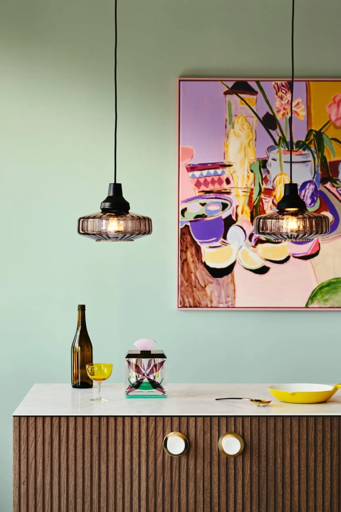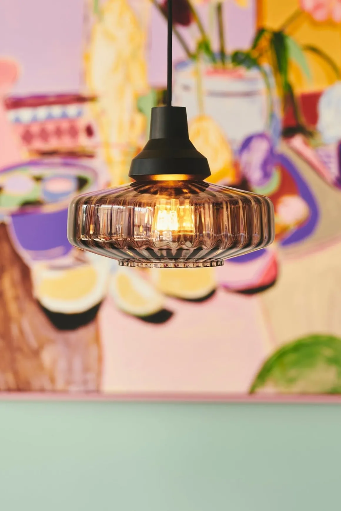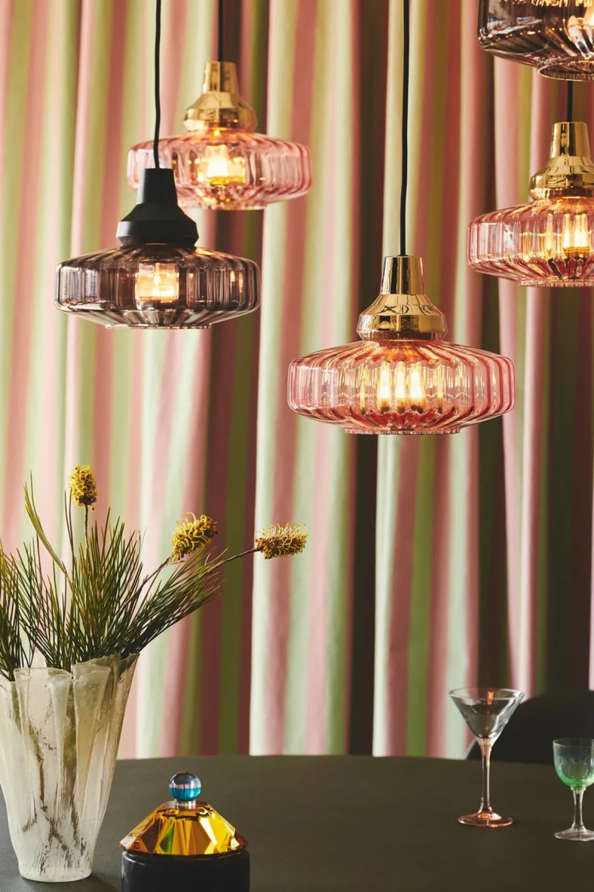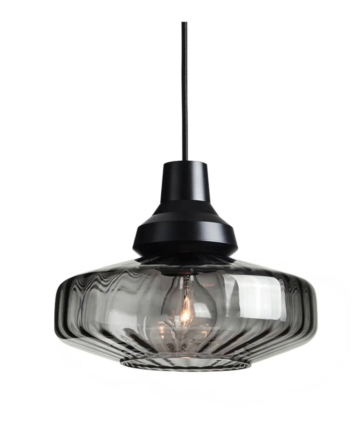New Optic Wave taklampe er ett godt eksempel på hvordan en lampe kan skape ett helt rom, lampen sprer et fantastisk og levende lys på grunn av formen på det bølgete glasset. Alle lampene i New Wave serien er laget av munnblåste bølgete glass med med en håndmalt kant i sølv.