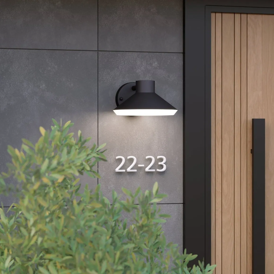 Ninnarella vegglampe er produksert i stål med en konisk lampeskjerm og en lysspreder i hvit plast. På grunn av den medfølgende GU10 LED-lyspæren, produserer produktet et varmt hvitt lys som vakkert lyser opp innkjørsler, stier og uterom. Produktet har en IP44-klassifisering, noe som betyr at det har beskyttelse mot sprutvann og er egnet for utendørs bruk. Med et rent design