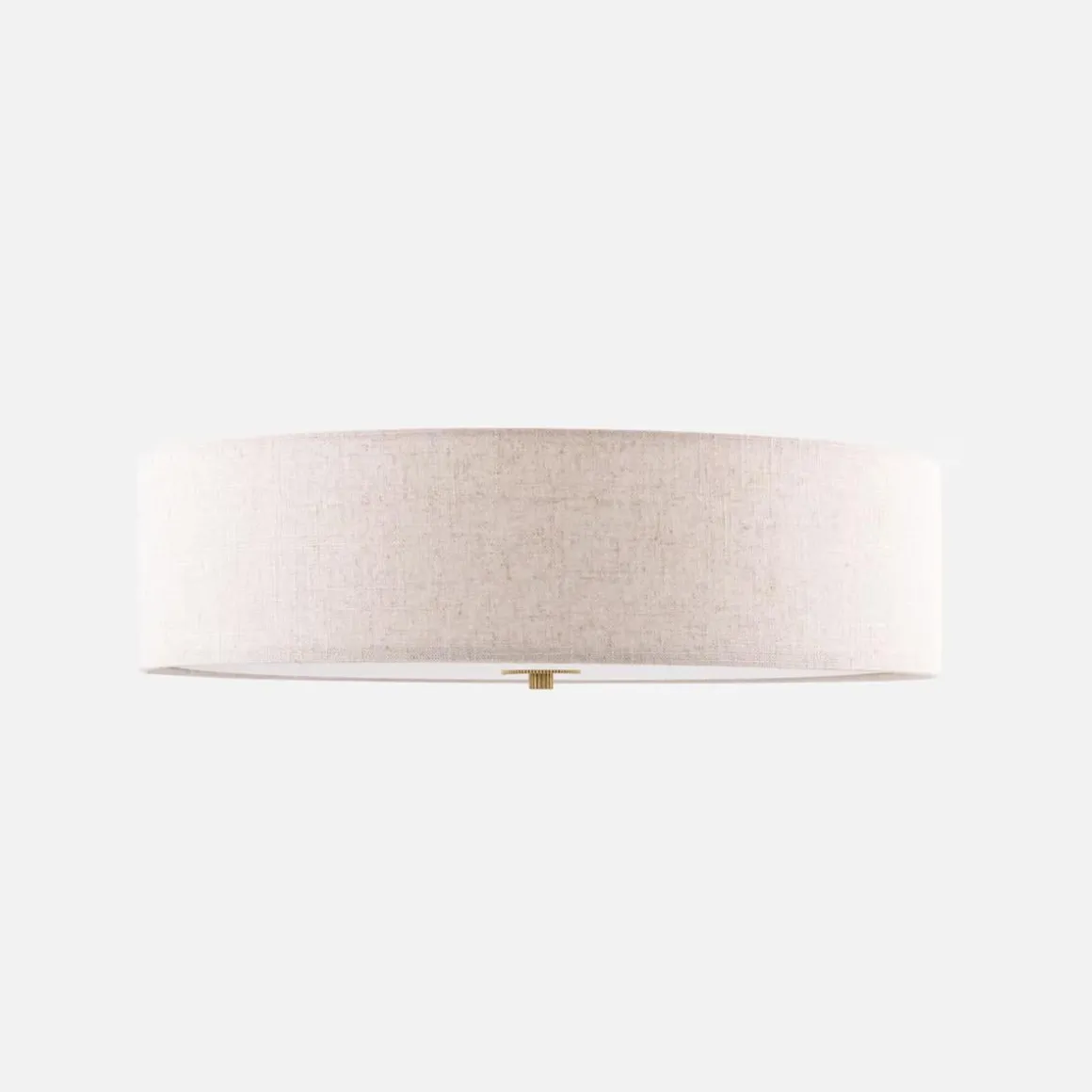 Noah er håndlaget av farget lin, noe som skaper en sofistikert og dekorativ taklampe. Lampen er kombinert med en ekte messingsdetalj, og stoffet har et livlig mønster med en hvit blender laget av det samme linmaterialet i bunnen for å spre et behagelig lys.