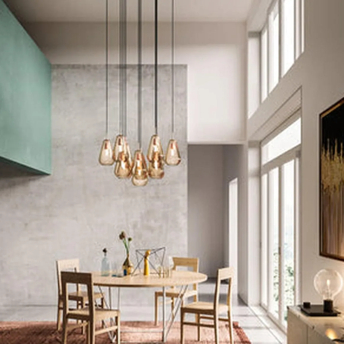 Anoli 13 Taklampe fra Nuura er laget av materialer av høyeste kvalitet, av dyktige håndverkere. Uttrykket er enkelt og består av munnblåste dråpeformede glassvedheng. Ta med det unike nordiske lyset innendørs med Anoli 13 taklampe.
