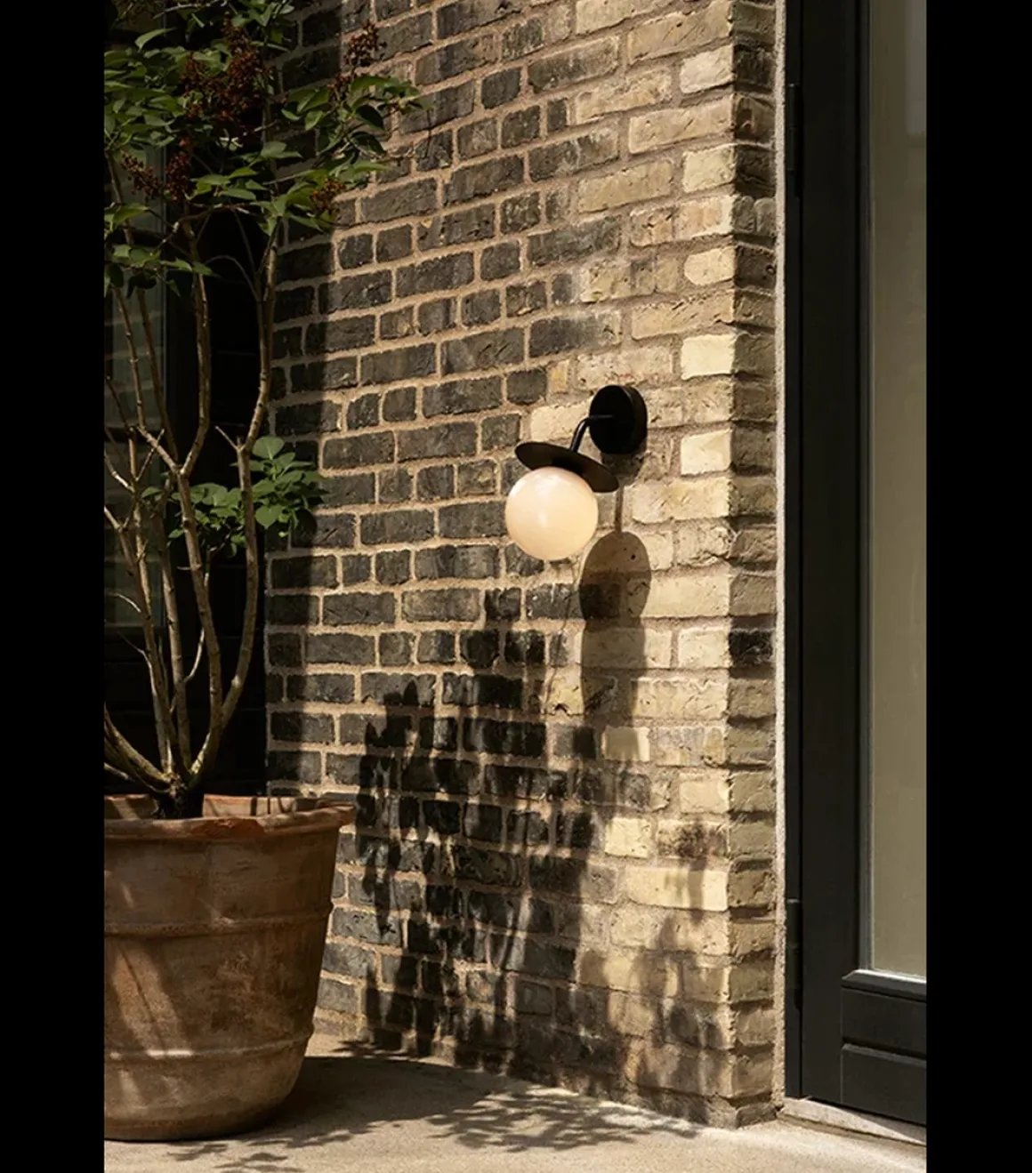 Liila Wall Outdoor er en forlengelse av Liila-kolleksjonen og designet for å monteres ute på yttervegger. Utelampen er konstruert med en veggmontert bakplate og en slank arm for å støtte den tynne, runde metallplaten og den munnblåste glasskulen som lyset reflekteres fra. Liila Wall Outdoor gir en minimal, organisk detalj til hjemmet.