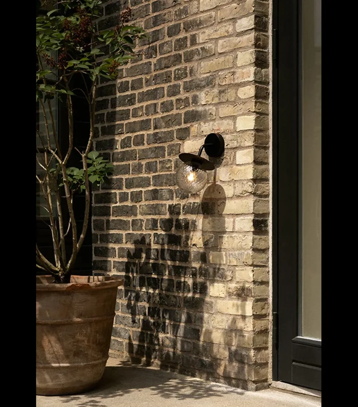 Liila Wall Outdoor er en forlengelse av Liila-kolleksjonen og designet for å monteres ute på yttervegger. Utelampen er konstruert med en veggmontert bakplate og en slank arm for å støtte den tynne, runde metallplaten og den munnblåste glasskulen som lyset reflekteres fra. Liila Wall Outdoor gir en minimal, organisk detalj til hjemmet.