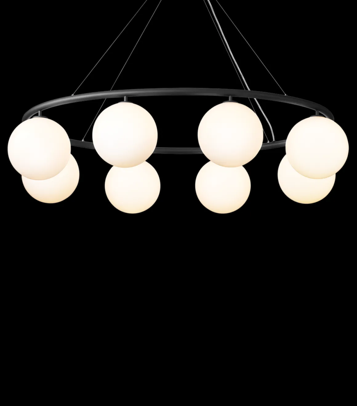 Miira 8 Circular har et klassisk utseende og er designet for å henge høyt eller lavt fra taket. Et spesielt trådsystem brukes til å justere høyden enkelt fra 45 til 250 cm. Lysekronen Miira består av en pulverlakkert metallring i en mørk steingrå farge, og fra dette sprer munnblåste glasskupler et stemninsskapende lys. Det enkle og klassiske designet gjør denne lysekronen til et yndet designelement, både i private hjem og i det offentlige. Lysekronen har en diameter på 100 cm, noe som gjør den ideell for plassering over et spisebord eller over en sofa.