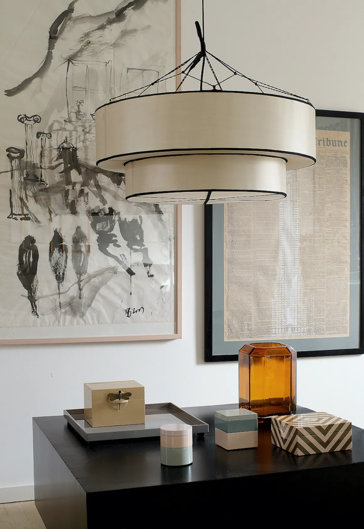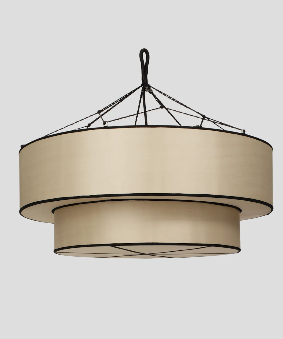 Oi Soi Oi lager noen av de vakreste taklampene vi har sett. Disse silkeskjermen kommer i forskjellige størrelser og fasonger. De henger fint alene og er fine i gruppe av flere.