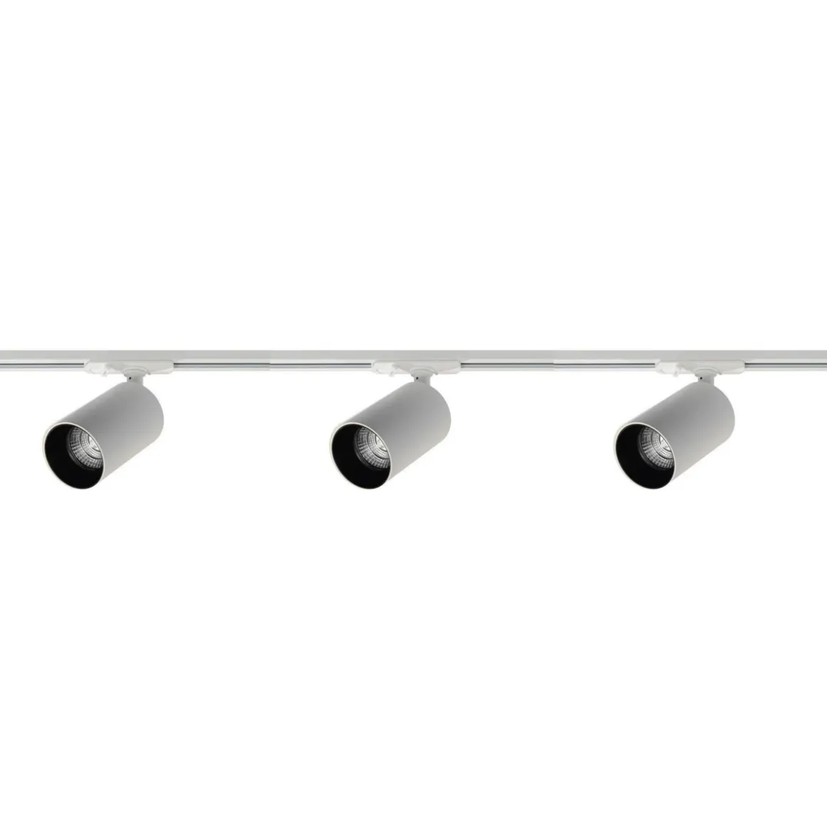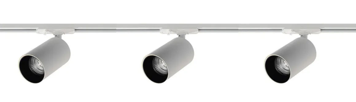 Komplett 1 meter spotskinne med 3 spotter. Lyspærer kjøpes separat med GU10 sokkel.