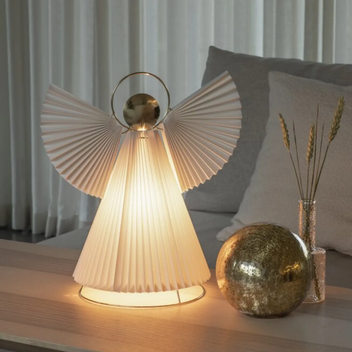 Flott engel i papp i messing farge.