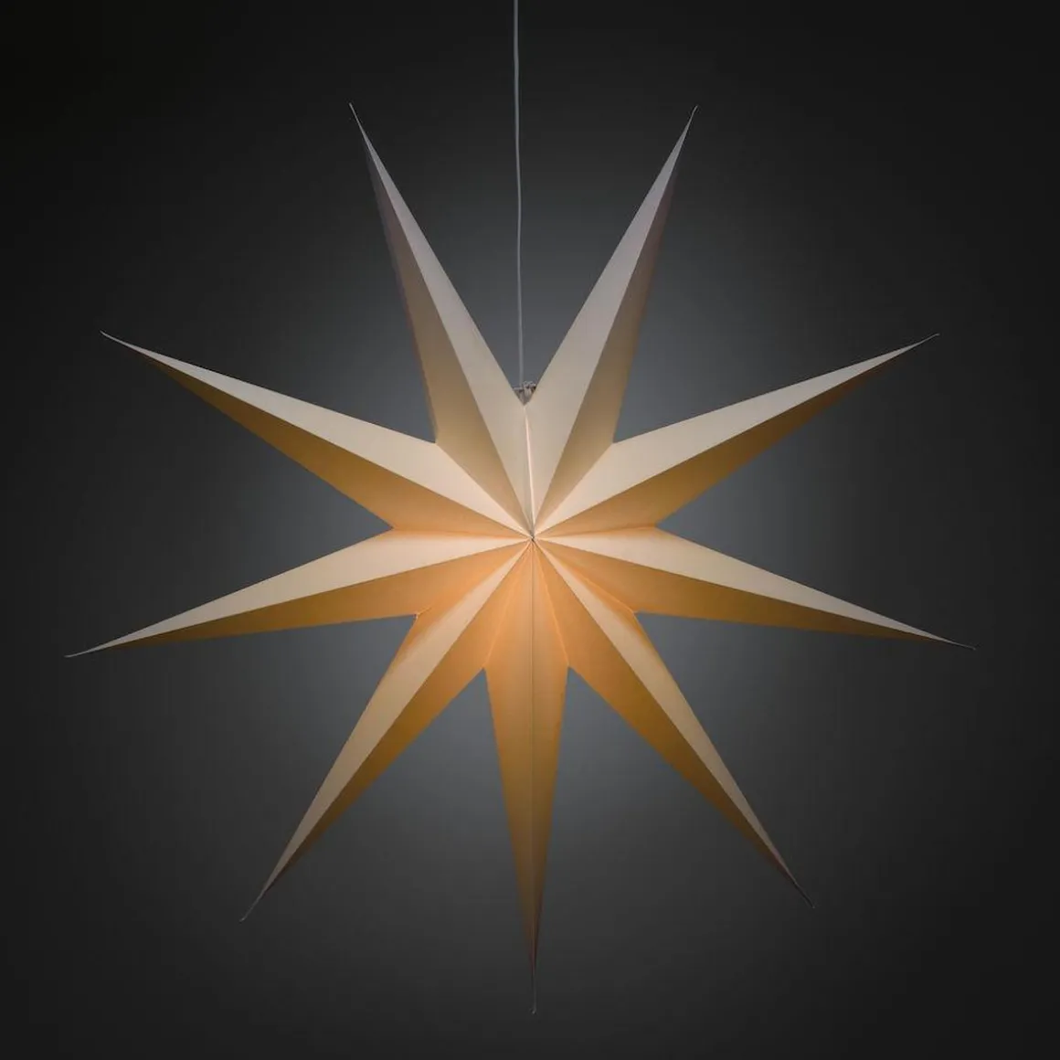 Pappstjerne 115 cm hvit, 9 armet. Inkludert oppheng. E14 lampeholder. Hvit kabel.