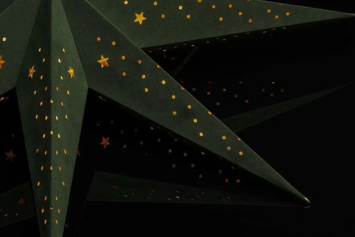 Pappstjerne 60 cm – Grønn fløyel/Gull innside