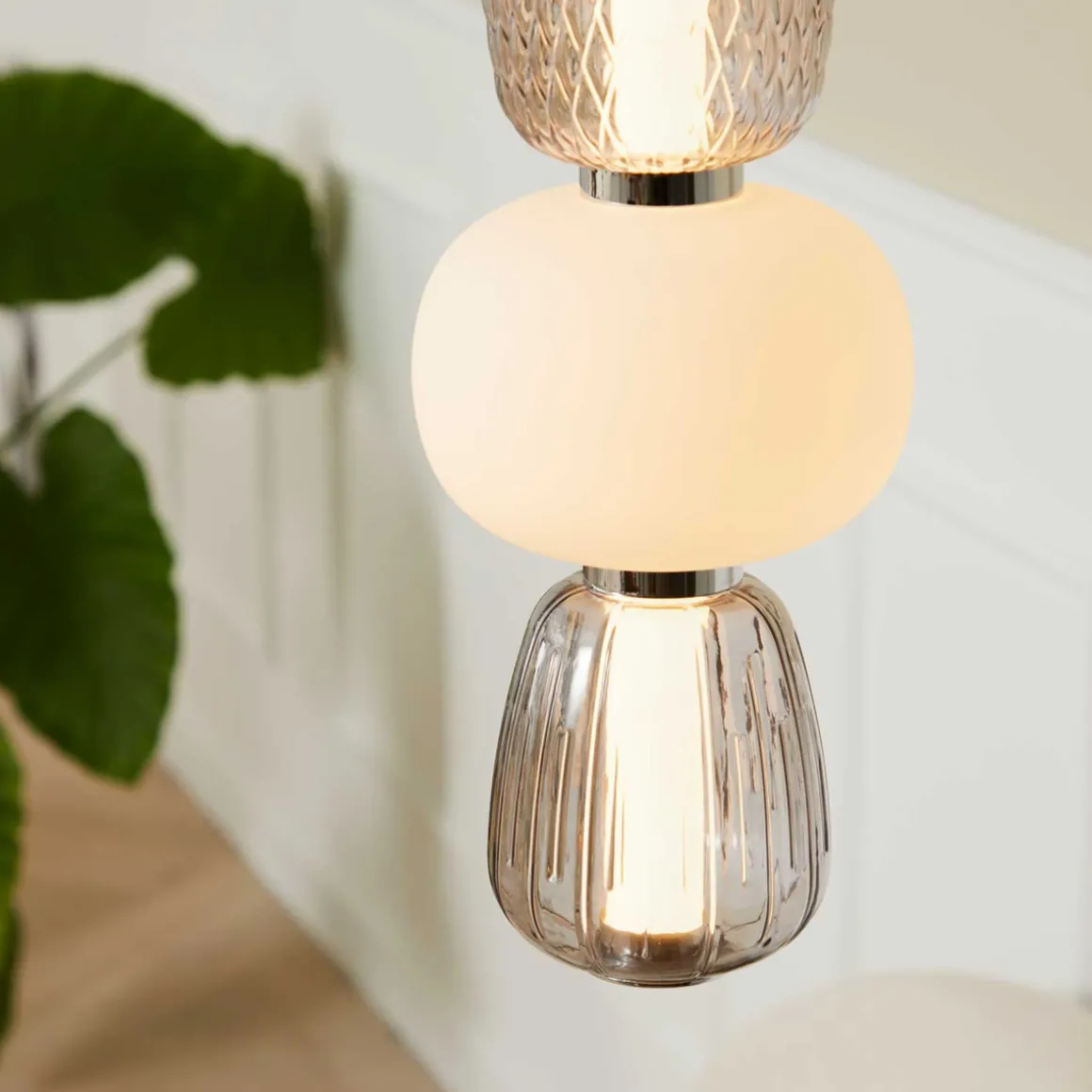 Som perler på tråden, er lampen i seg selv dekorativ, eksklusiv og klassisk på samme tid. Pearl takpendel har integrert LED utført i krom og matt gold.