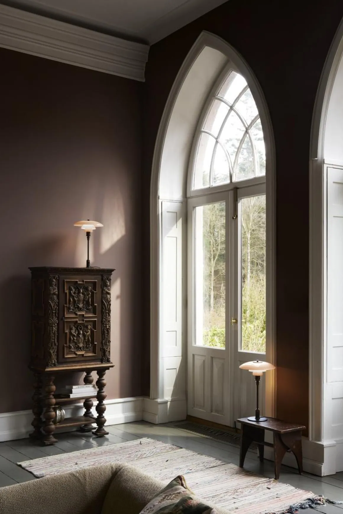 Henningsens trelags glasskjermer sprer lyset jevnt, reduserer blending og skaper en behagelig atmosfære – perfekt for å fremheve bord, kommoder eller vinduskarmer.