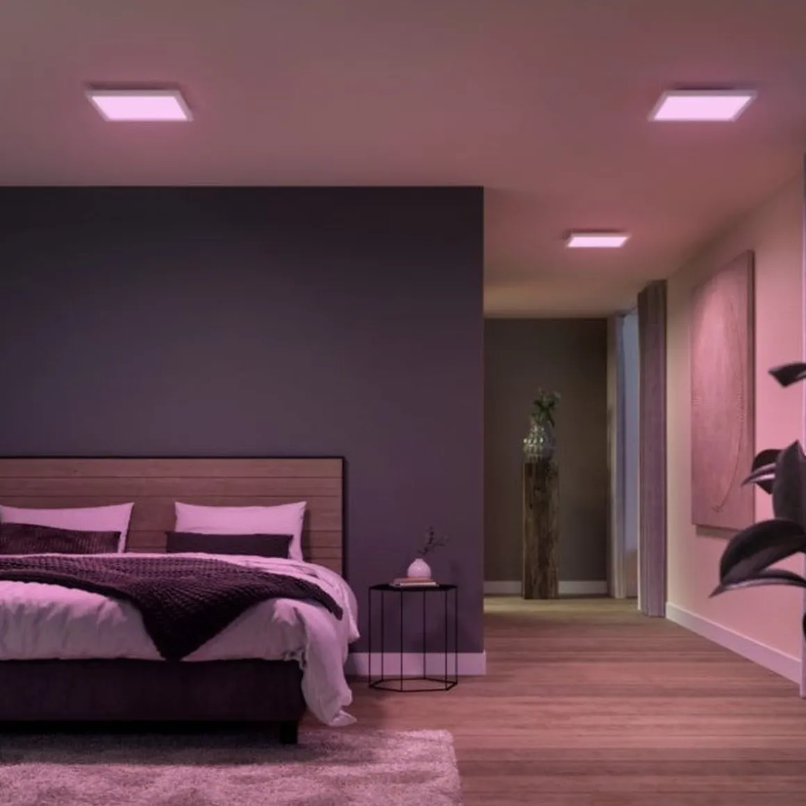 Surimu-takpanelet har et mykt, spredt farget lys. Det passer perfekt til stuer og soverom, er enkelt å montere, går helt jevnt med taket og fyller rommet med lys.