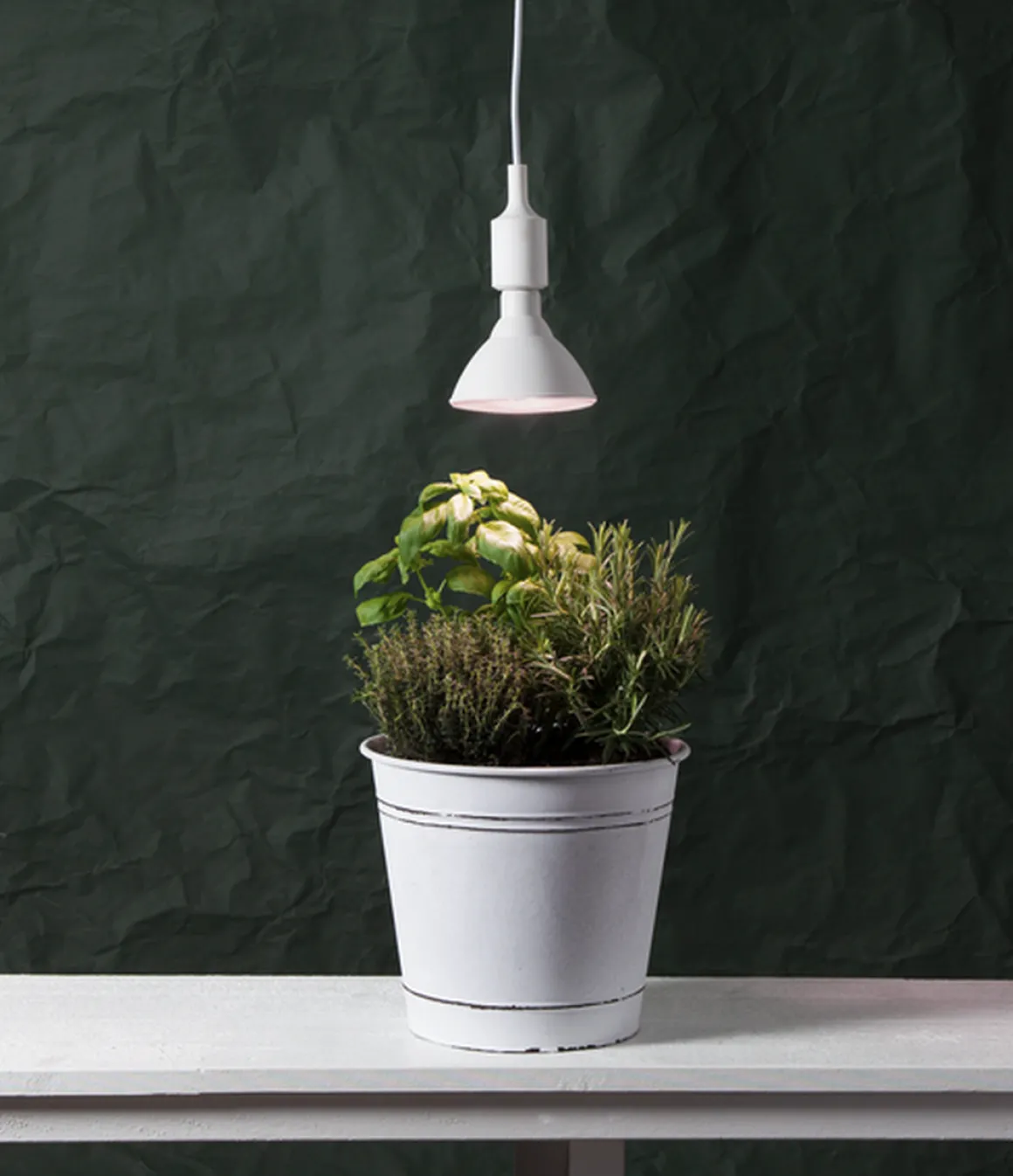 Et energieffektivt LED-plantelys som avgir lys med blå og rød bølgelengder som er optimalisert for rask vekst og økt blomstring. Lyset er rød-lilla, og lyspæren er derfor egnet for steder beregnet til plantedyrking.