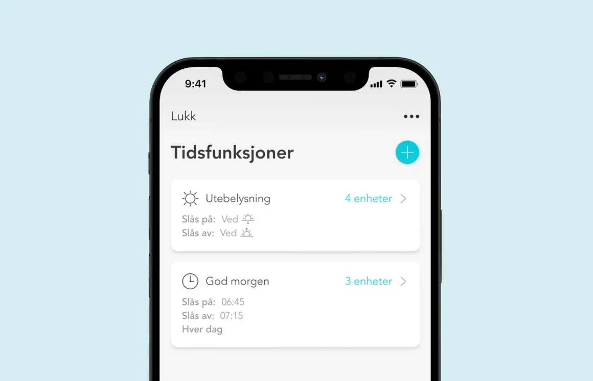 La fasadebelysningen følge soloppgang og solnedgang, eller tenn og slukk lamper på et bestemt tidspunkt. Alle produktene våre har innebygd astro- og ukesur, noe som gjør enkel planlegging mulig.