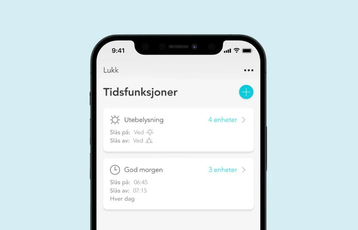 La belysningen følge soloppgang og solnedgang, eller tenn og slukk lamper på et bestemt tidspunkt. Alle produktene våre har innebygd astro- og ukesur, noe som gjør enkel planlegging mulig.