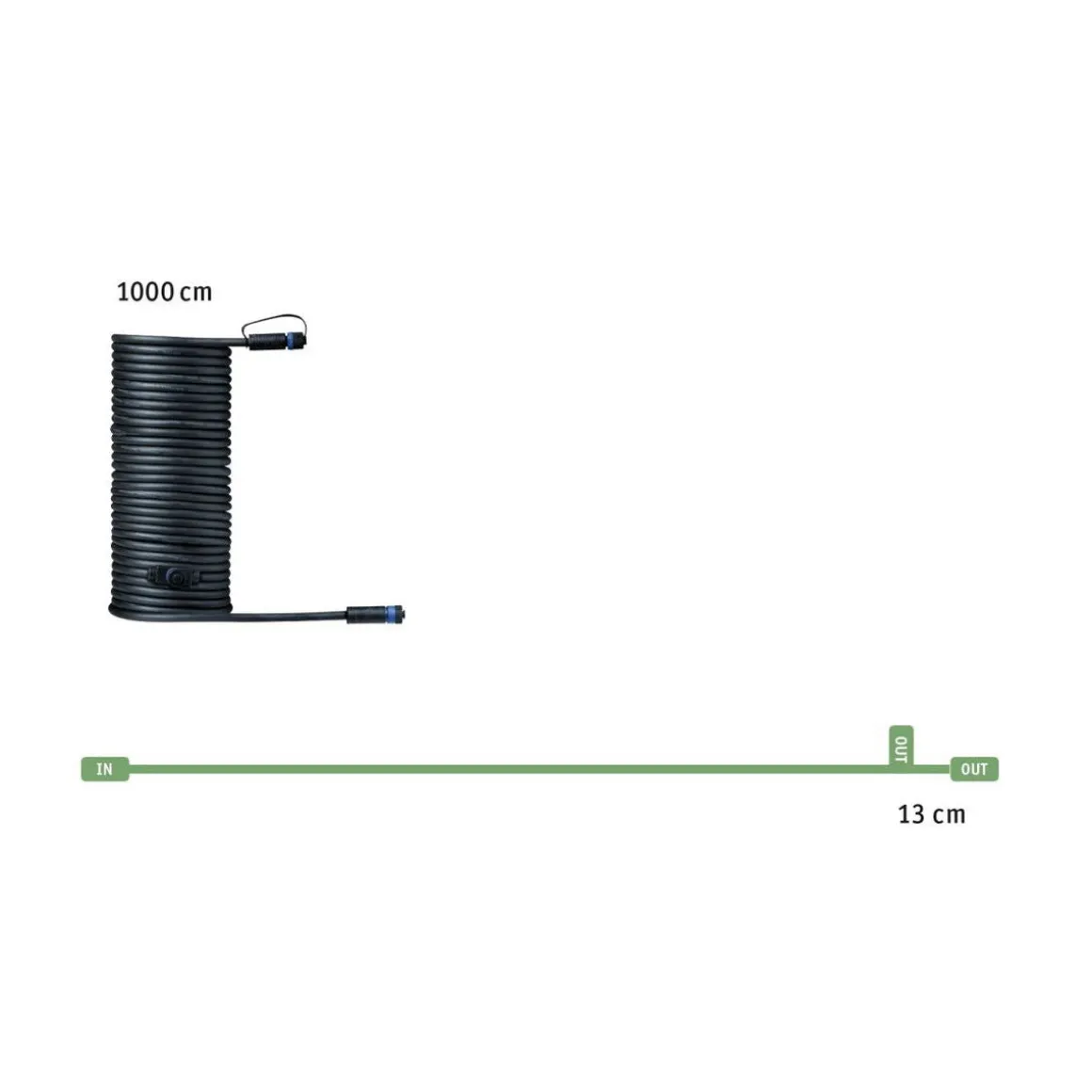 Plug & Shine-tilkoblingskabelen bygger bro over avstander på opptil ti meter og muliggjør tilkobling av to ekstra armaturer eller ekstra tilbehør. Ubrukte tilkoblingsporter kan forsegles med dekkhettene som følger med for å garantere IP68 nedsenkingsbeskyttelse. Kombinert med armaturer og transformatorer i Plug & Shine-serien, lyser de opp uterommene dine i henhold til dine personlige preferanser: fra husvegger eller terrasser, til hagestier og planter.